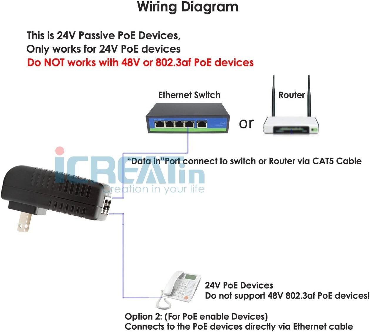 24V Passive PoE Injector Adapter for Security Cameras - Ubiquiti Replacement