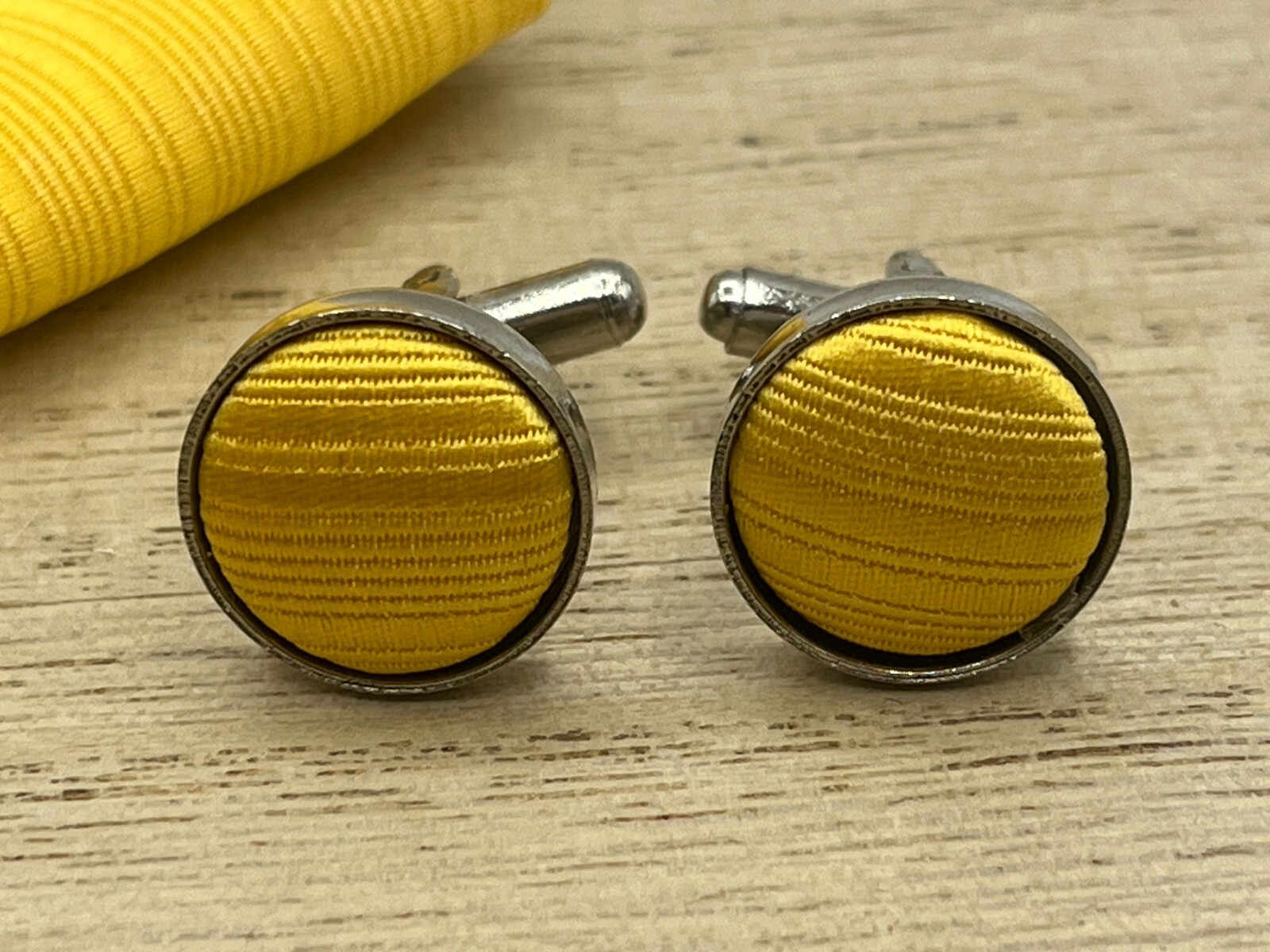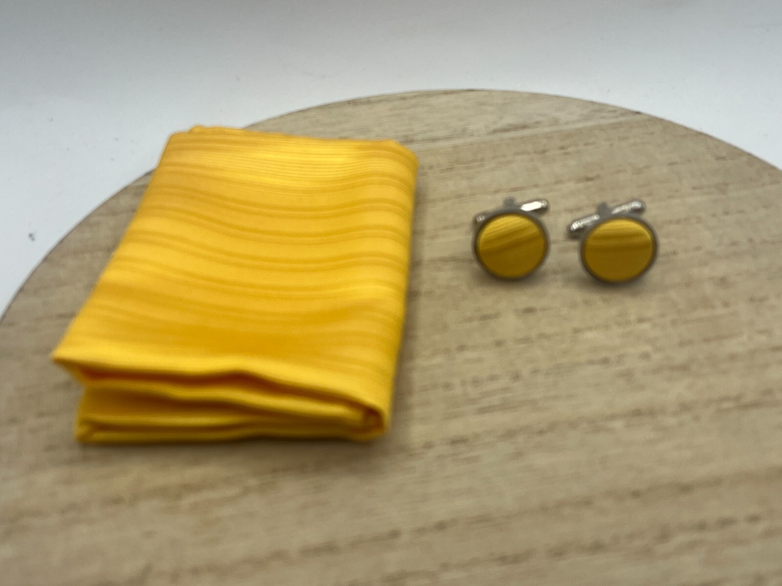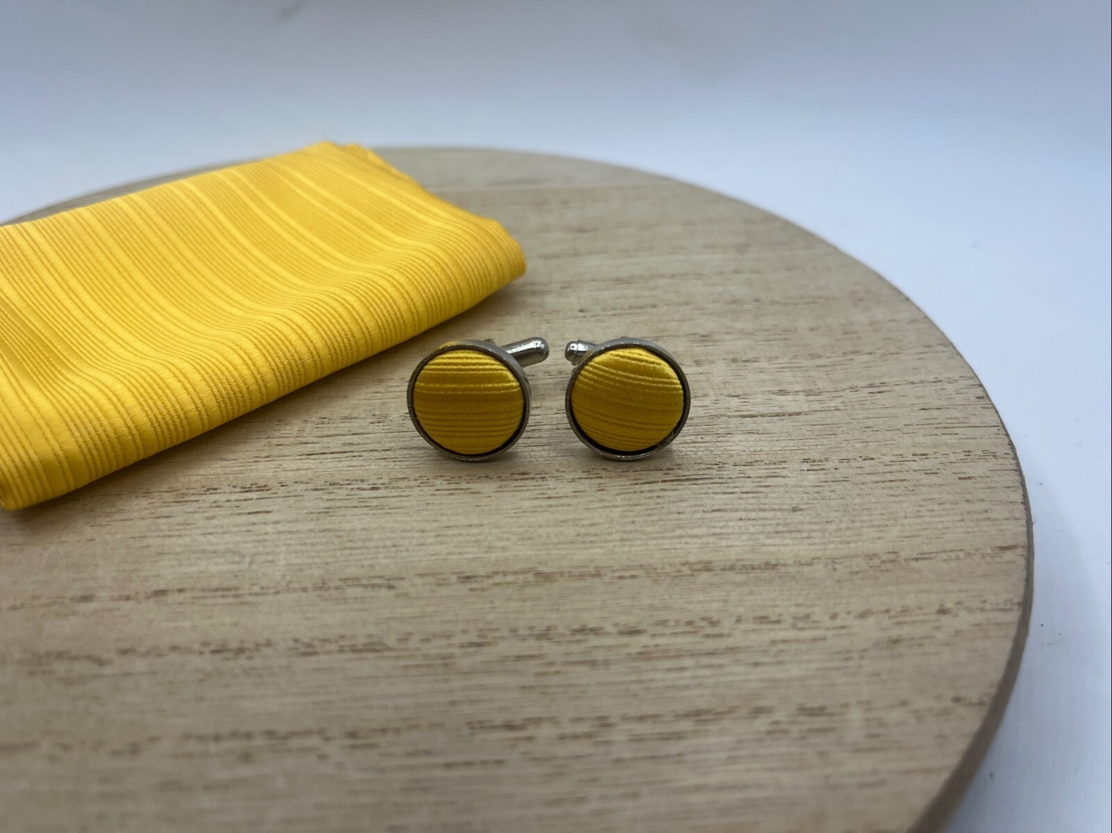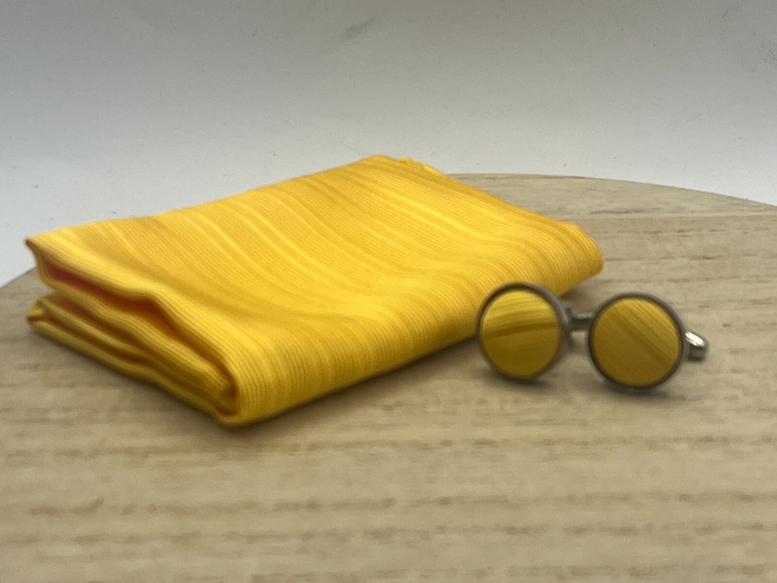 Mustard Yellow Small Striped Cufflink Handkerchief Set