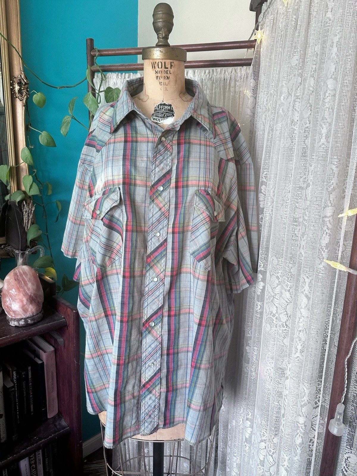 Vintage Wrangler Rainbow Pearl Snap Work Shirt Large