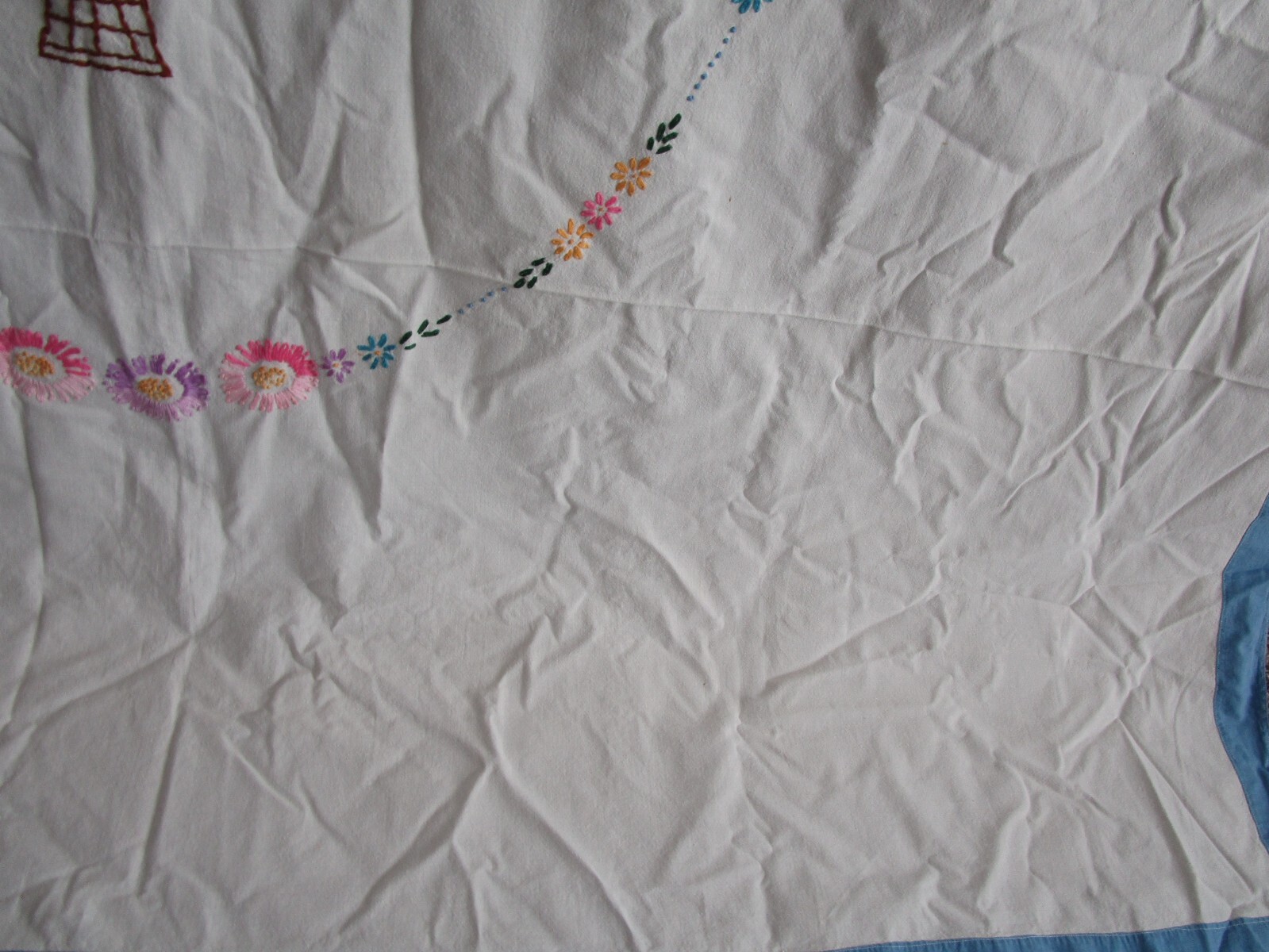 Vintage 1950s Flower Basket COVERLET QUILT, EMBROIDERED Summer Weight, 74 X 84