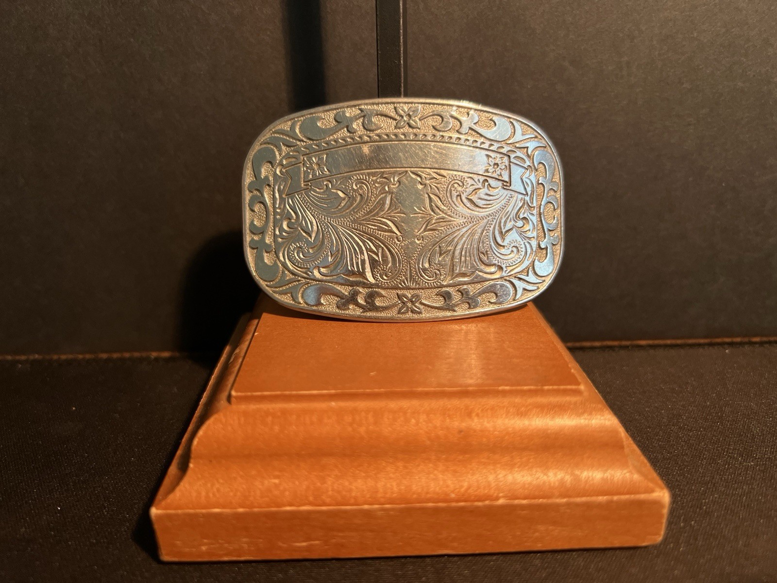VTG customizable silver-plated belt buckle ornate floral scrollwork design R