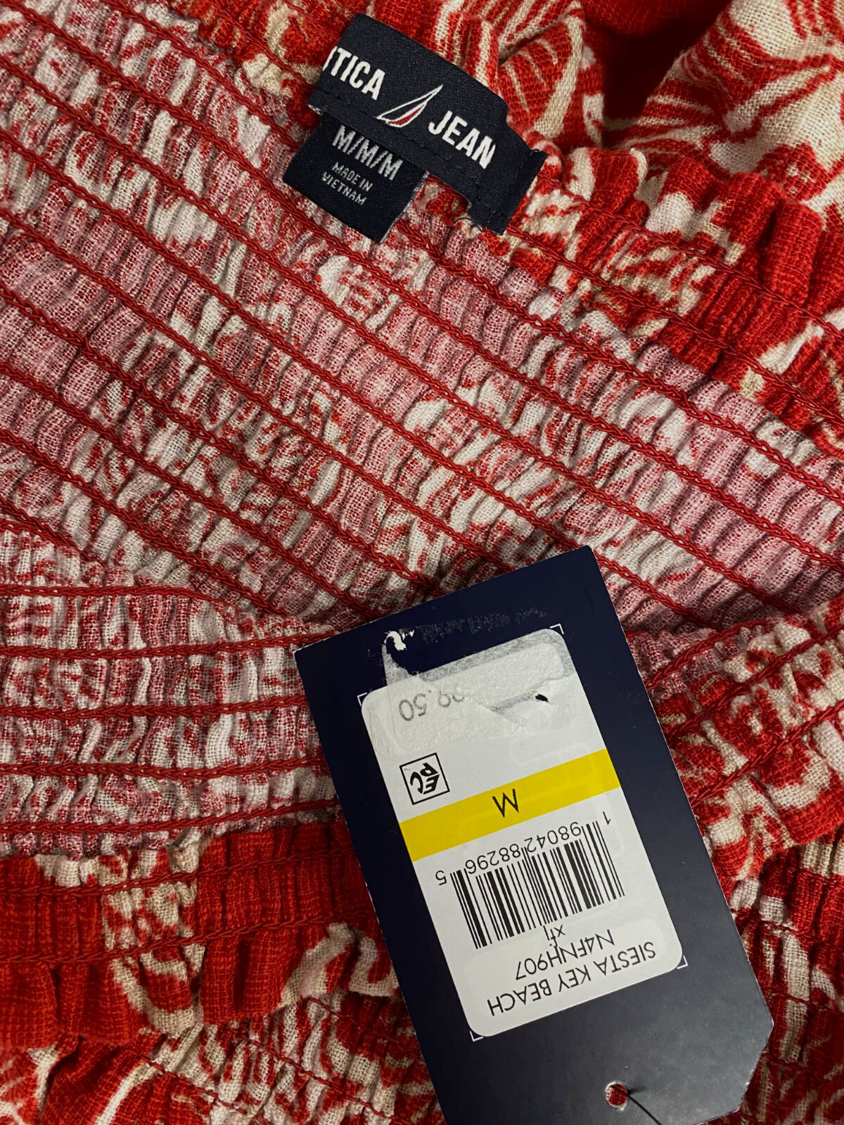 Nautica Jeans Women's Red Floral Smocked Waist MIDI Skirt Size M