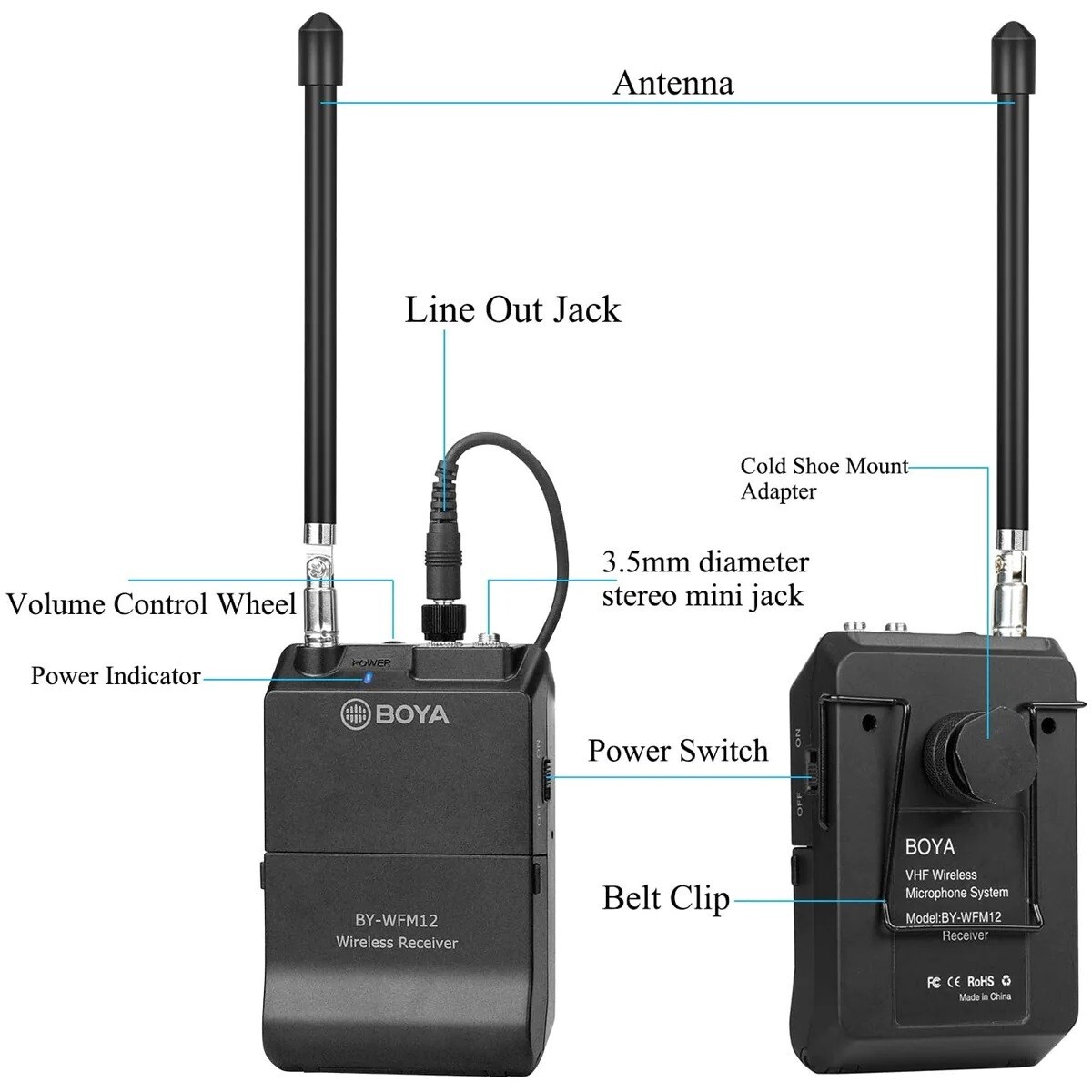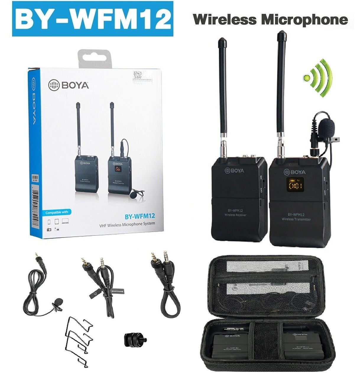 Boya VHF 12-Channels Wireless Lavalier Microphone System Transmitter Receiver