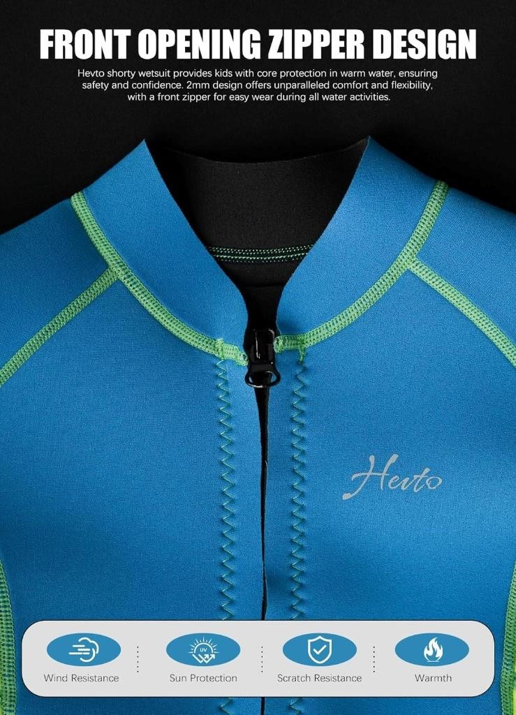 HEVTO GIRLS/BOYS YOUTH 2MM NEOPRENE FRONT ZIP NEON YELLOW TURQUOISE WETSUIT SZ 6