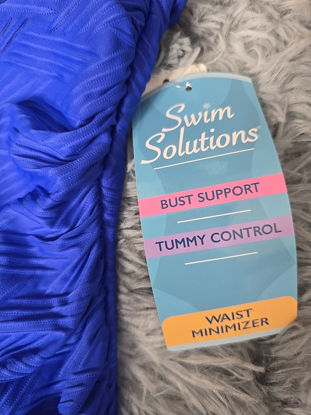 NWT Swim Solutions 16 Royal Blue Textured Plunge 1PC Swimsuit
