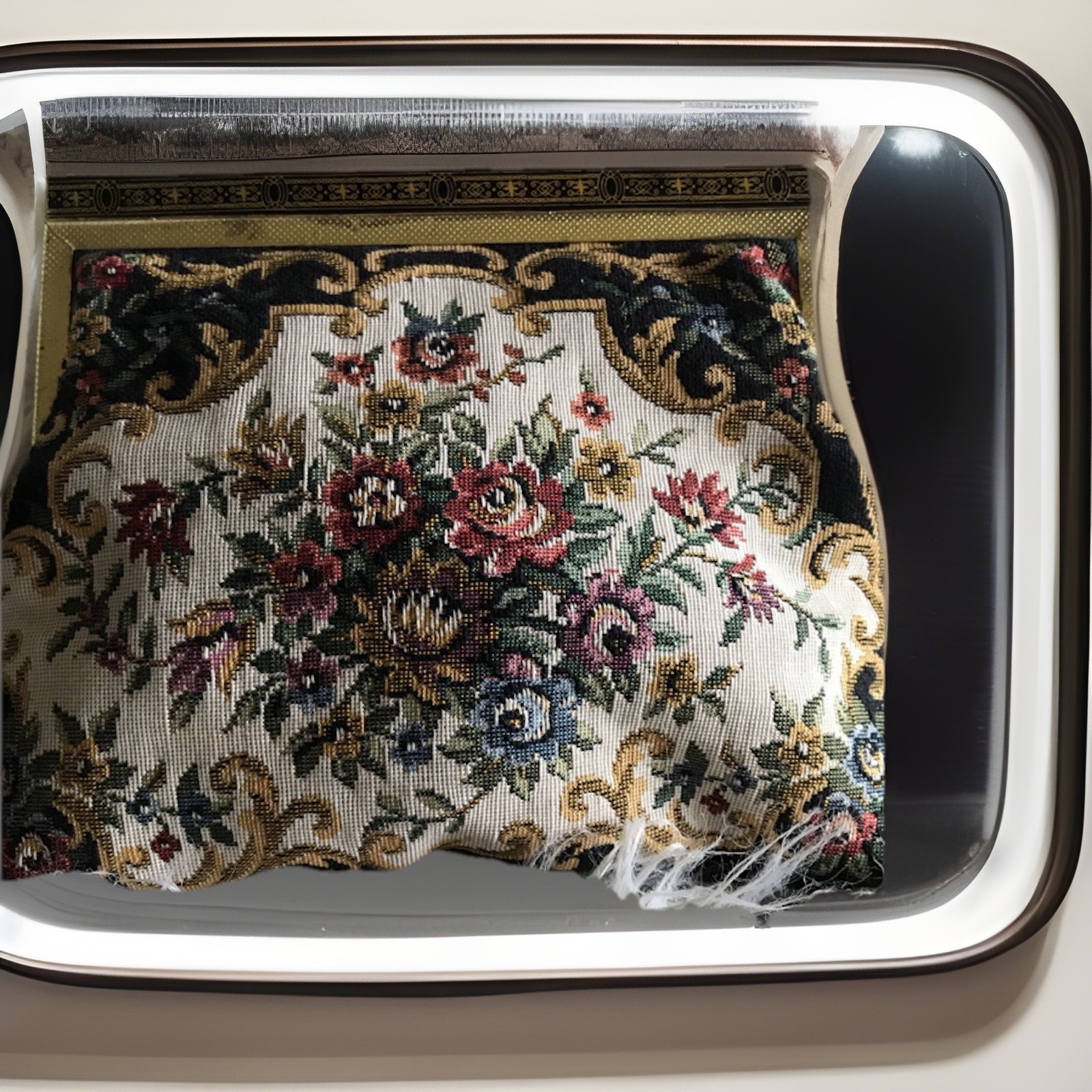 Antique 1920 s Era Cluth Style Black Floral Tapestry Purse Handbag