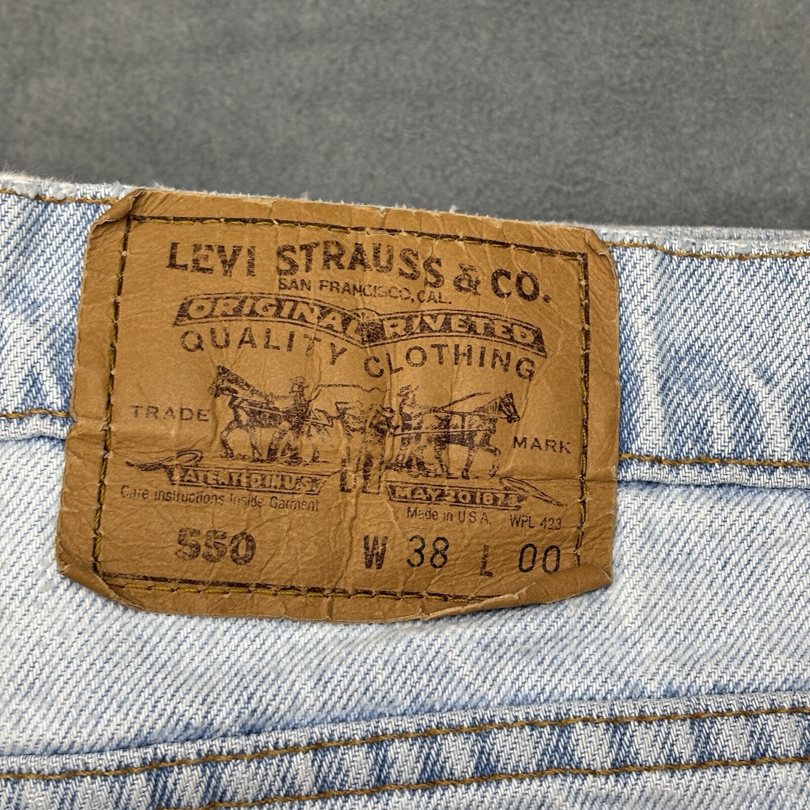 Vintage 1993 Levis 550 Light Washed Denim Orange Tab Shorts Size 38 Relaxed Fit