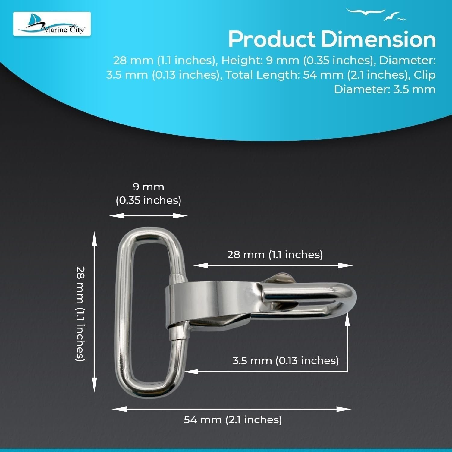 MARINE CITY 1.1 Rectangular Buckle with Snap Hook 304 Stainless Steel for Boat