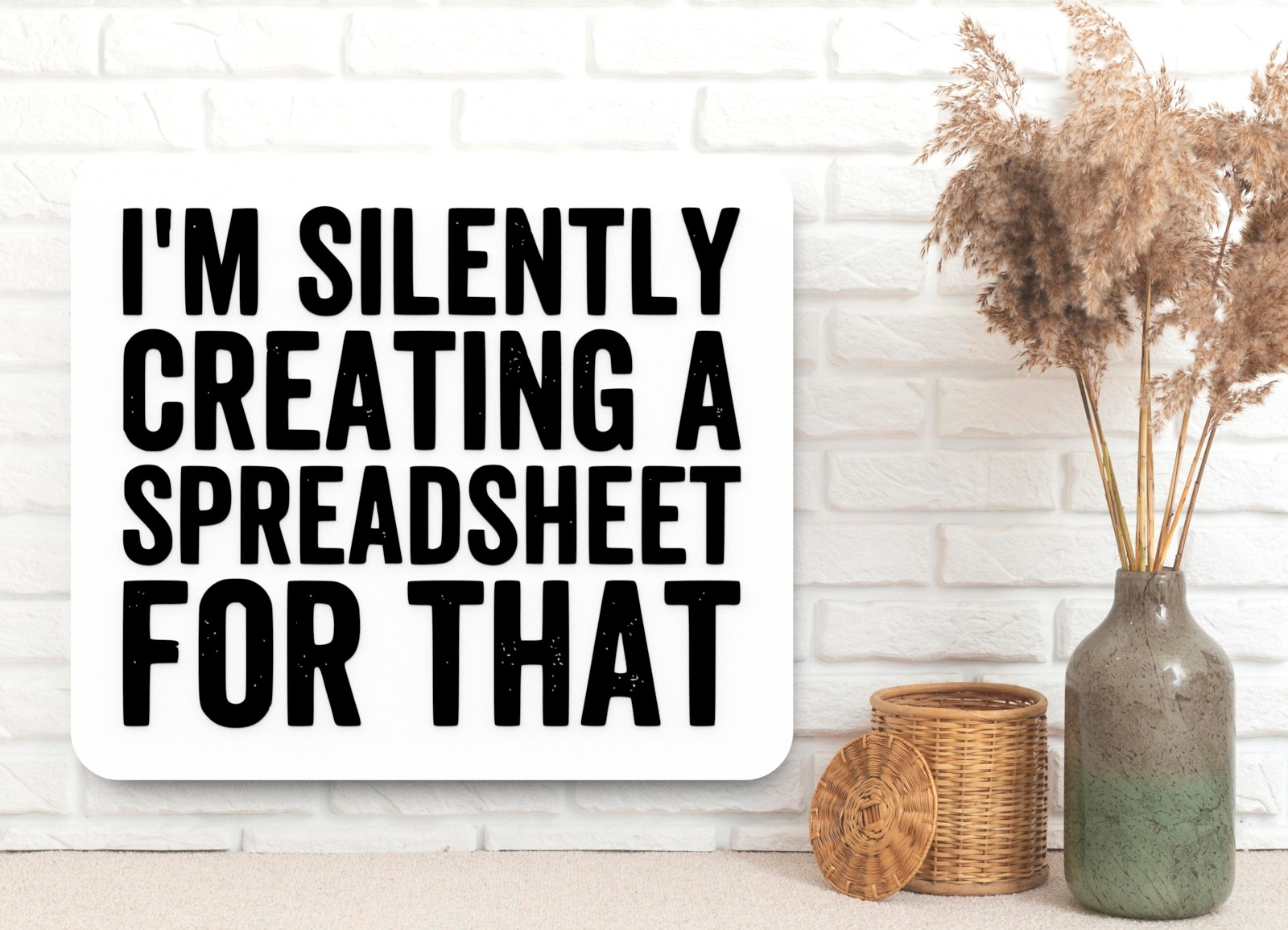 Silently Spreadsheeting Funny 3D Sign for Home or Office Decor