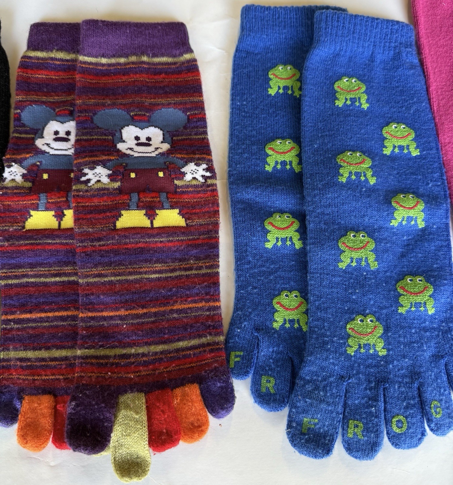 VTG Lot of 4 Pairs 90s Y2K Toe Socks Grip Socks Frogs Mickey Mouse Funky Novelty