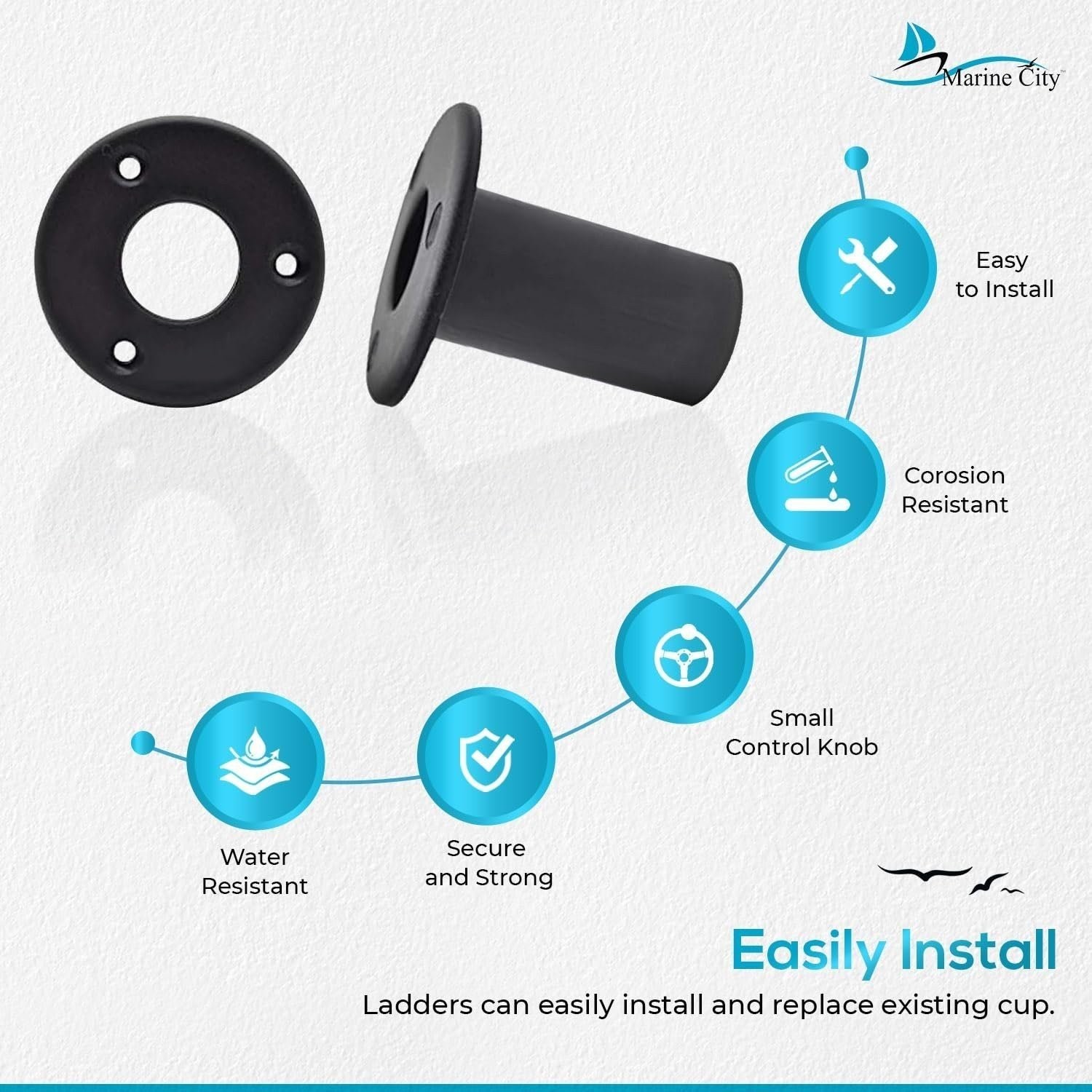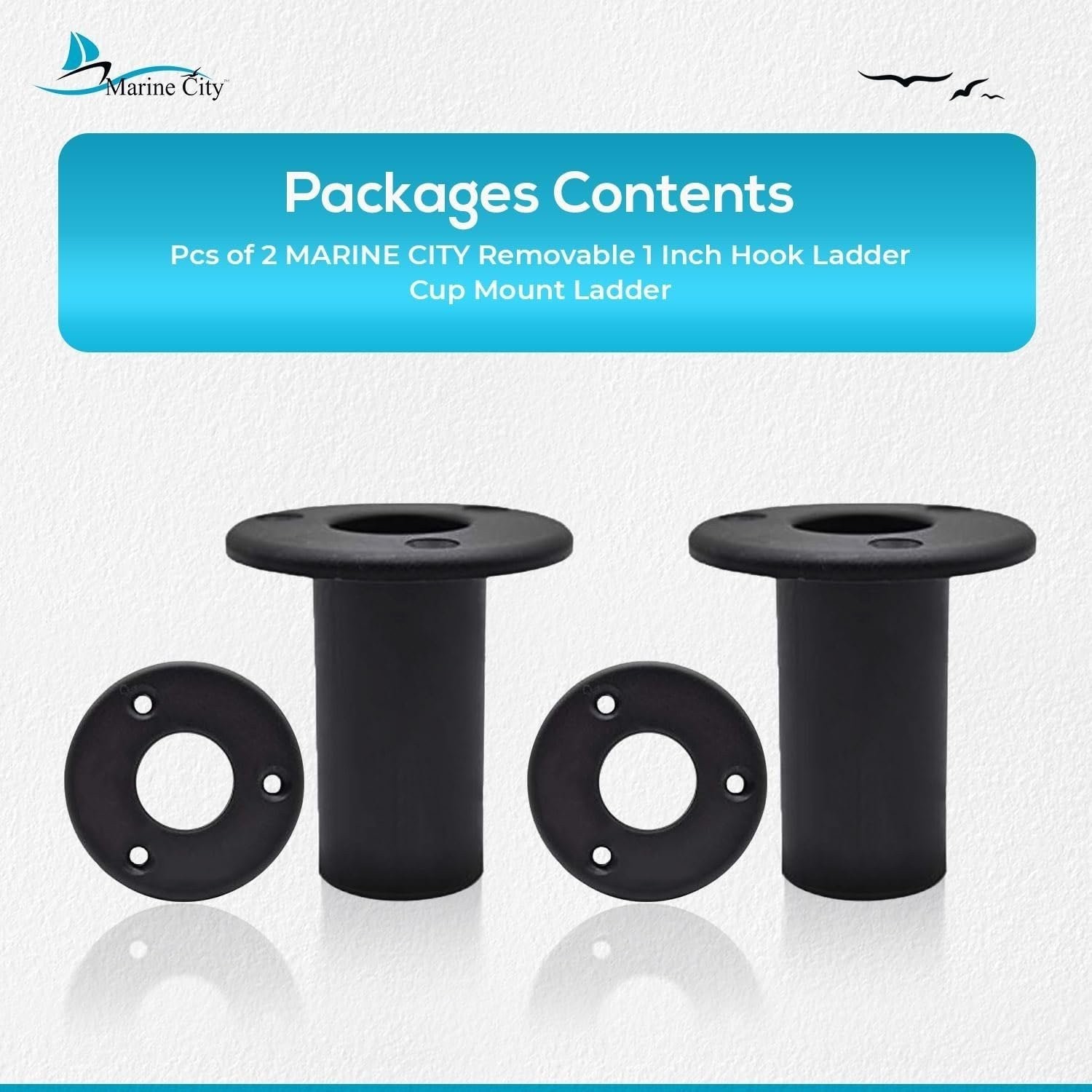 Marine City Removable 1 Ladder Hook Cup Mount - Tube Insert Plugs 2 Pcs