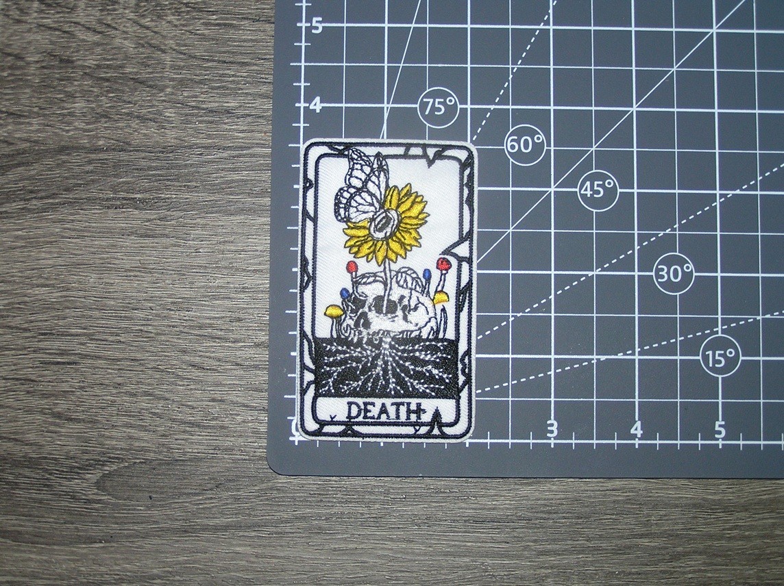 как выглядит Death Skull Flowers Butterfly Goth Punk Embroidered Iron On Patch 2" x 3.5" фото