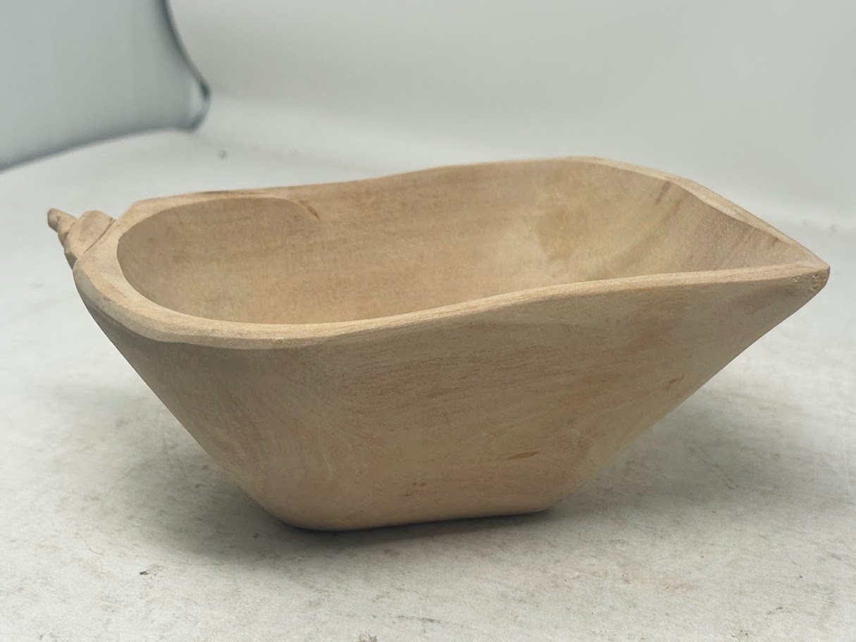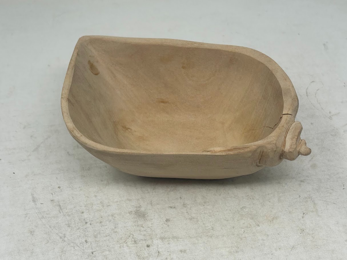 Hand-carved Wooden Bowl Unvarnished Swirly Leaf Shape Decor Dining Rustic
