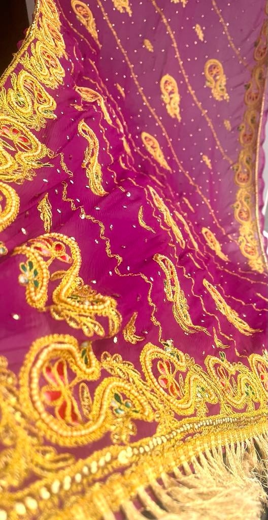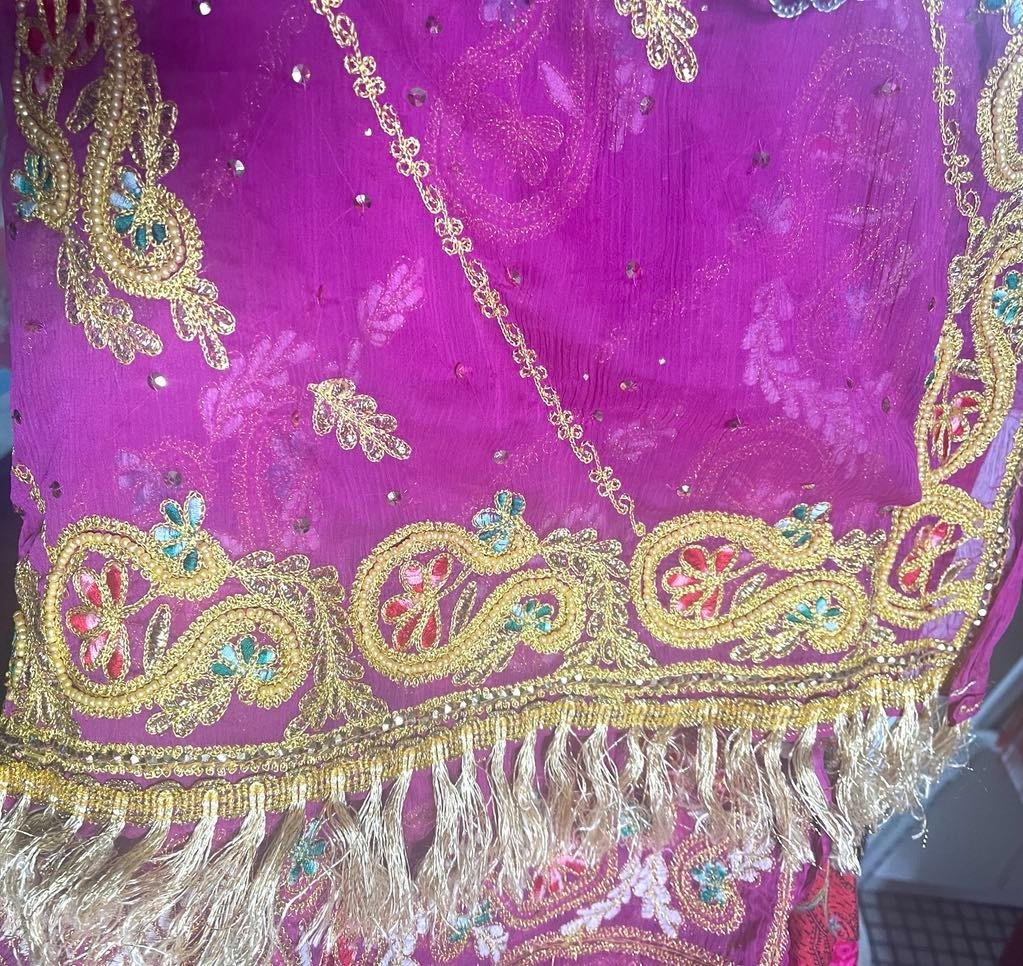 как выглядит TRIBAL BELLY DANCE VEIL - SHINY VIBRANT FUSCHIA - PEARLS GOLD SEQUINS -INDIA фото