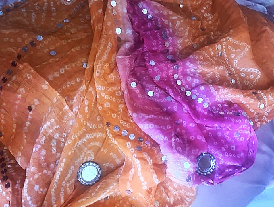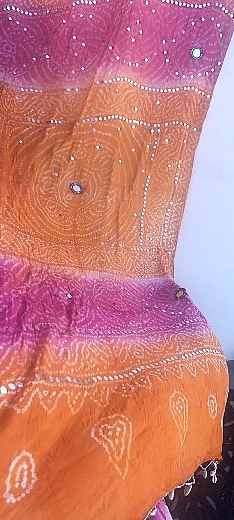 как выглядит TRIBAL BELLY DANCE VEIL -PINK ORANGE - TIE DYE VEIL SILVER SEQUINS MIRRORS фото