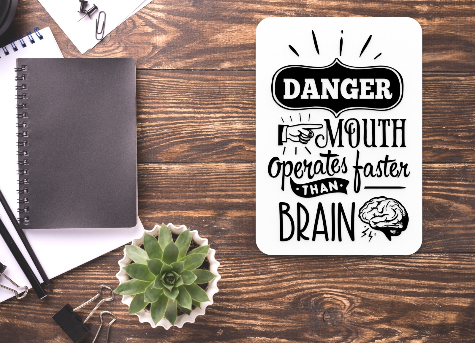 Danger Mouth Operates Faster Than Brain Funny sign For Home or Office