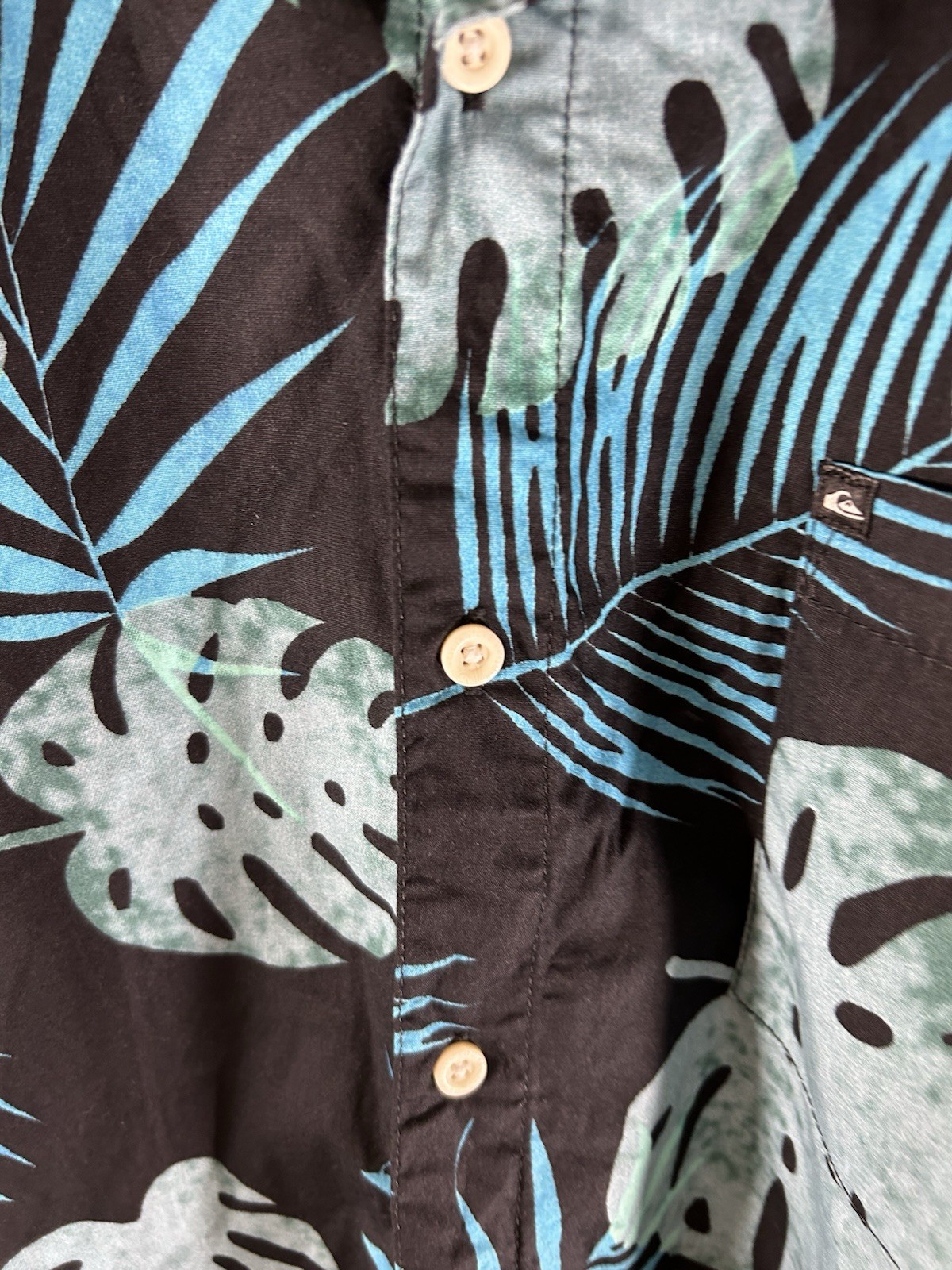 Quicksilver Hawaiian Button Up Floral Men Size XL Tall Blue Aloha Shirt Cotton