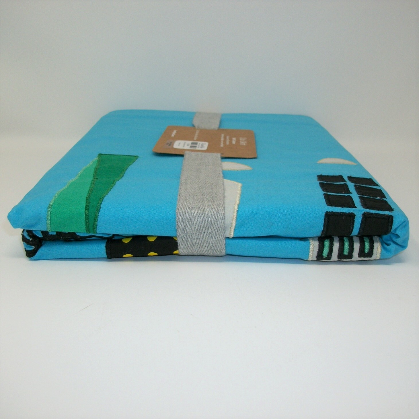 Land of Nod Skyline Builders Crib Skirt Blue Applique Sun Buildings Clouds NWT