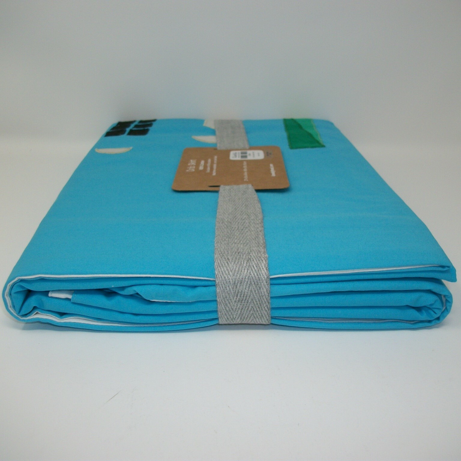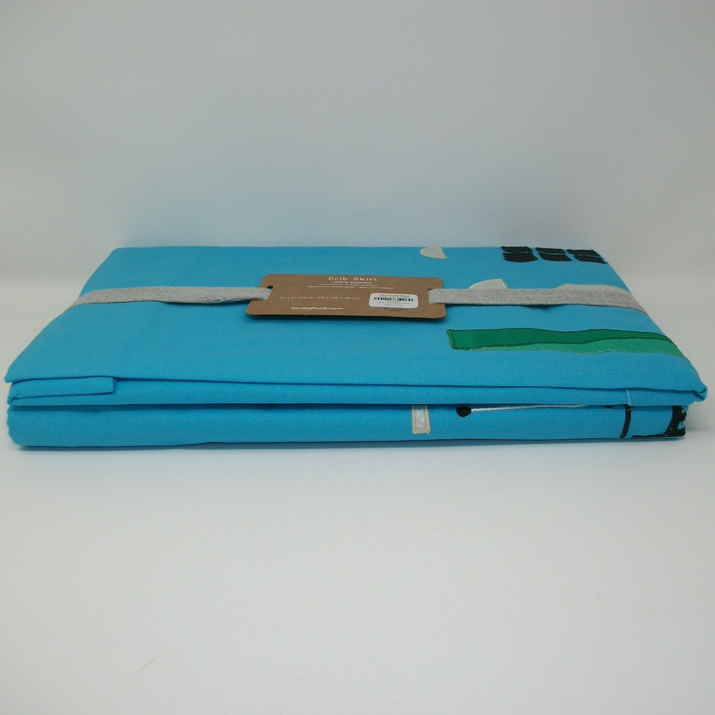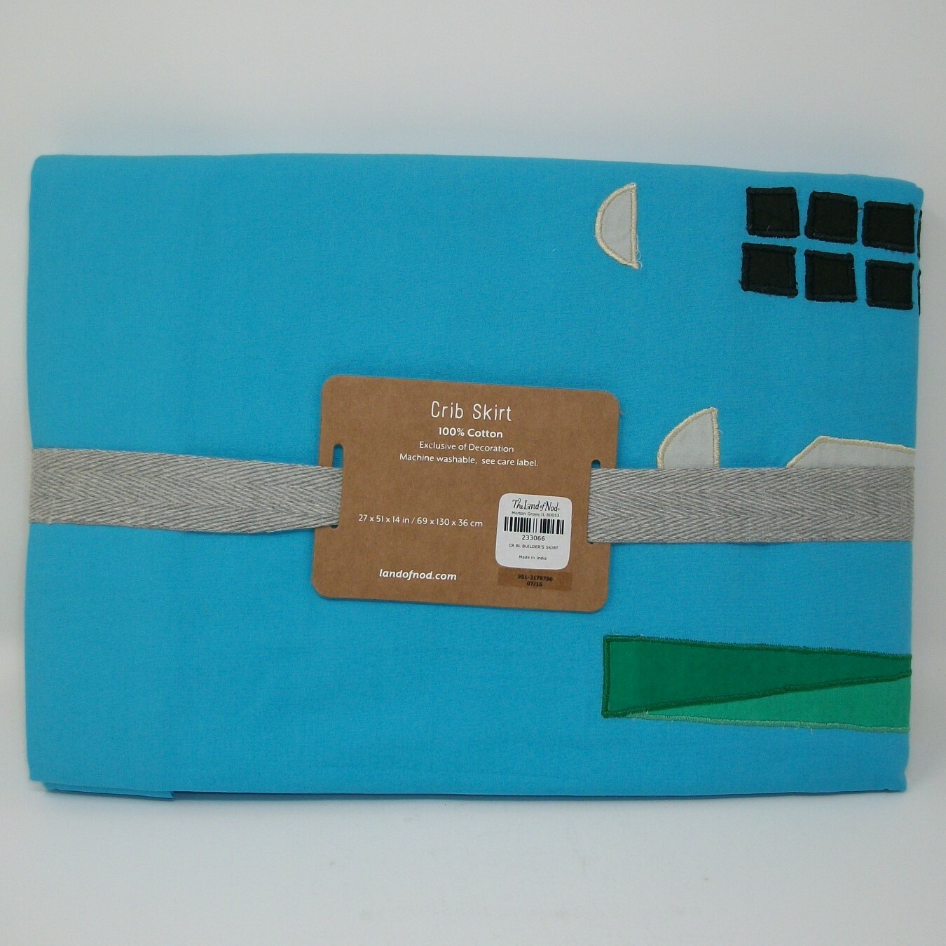 как выглядит Land of Nod Skyline Builders Crib Skirt Blue Applique Sun Buildings Clouds NWT фото
