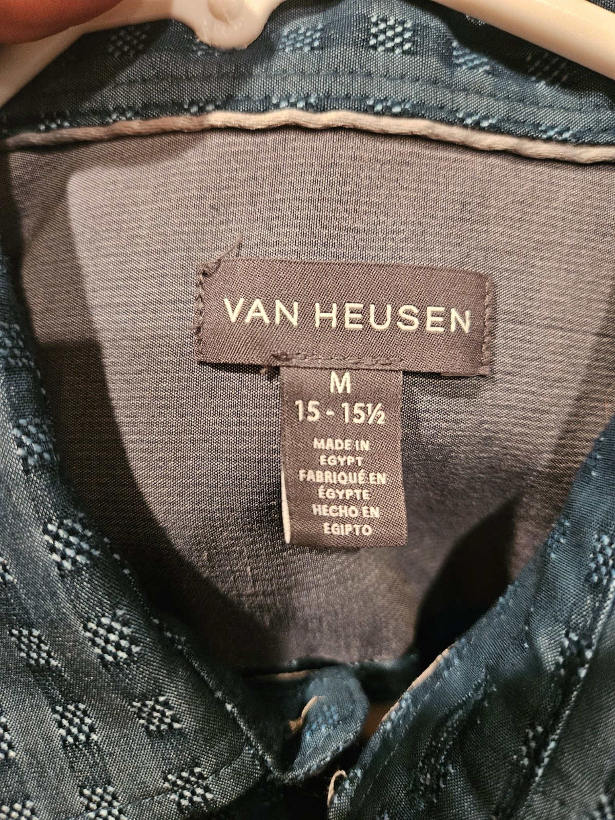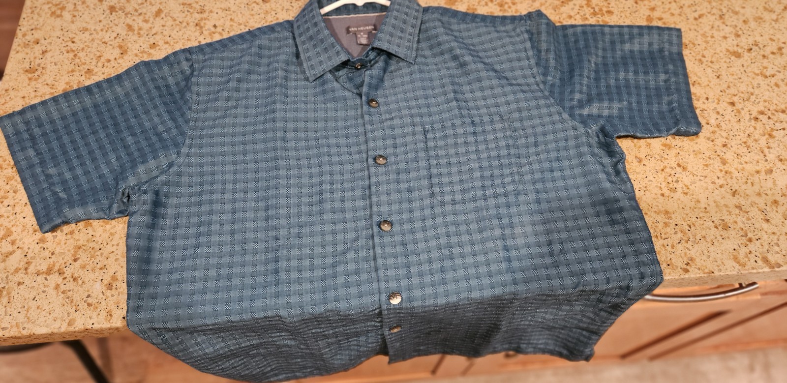 как выглядит Van Heusen Mens Size M Short Sleeve Button Up Cotton Blend Blue Shirt фото