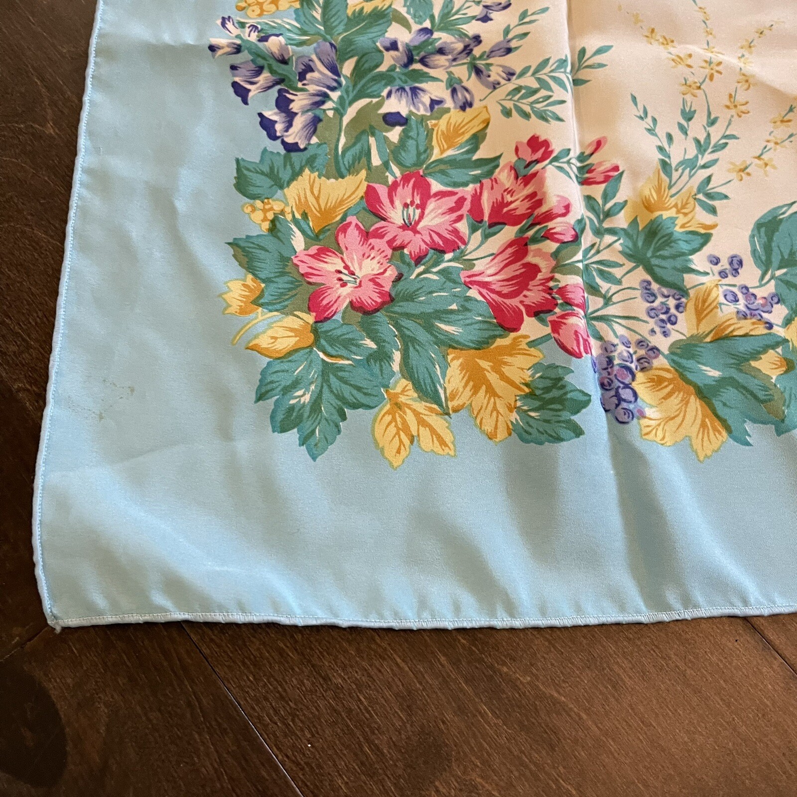 Vintage 1960's Floral Mid-Century MCM Colorful Scarf Blues and Pinks Accessory