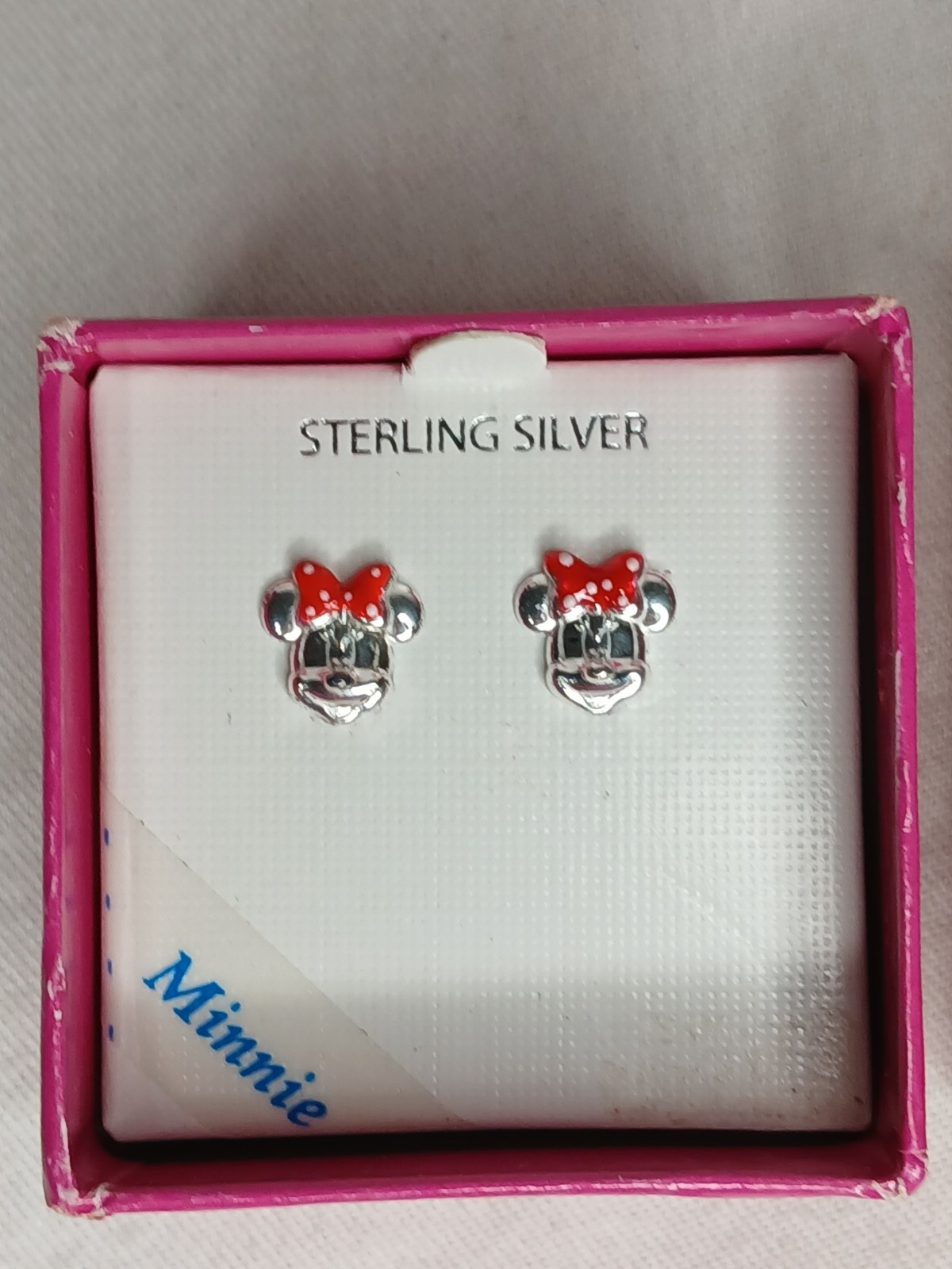 Disney Princess earrings stud 925 sterling silver Minnie Mouse NEW IN BOX