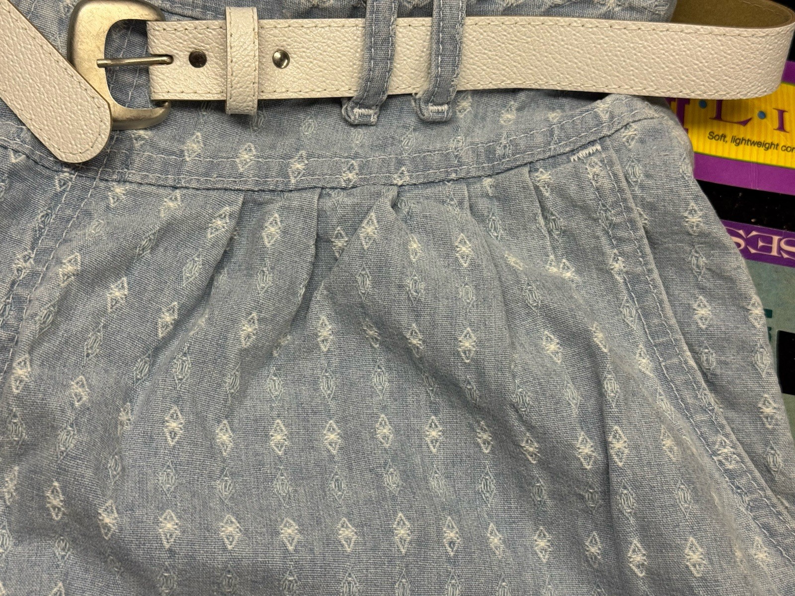 как выглядит Vtg 90s NWT Misses Sz 16 LEE Lites Jean Shorts Pale Blue Embroidery Belt Yoke фото