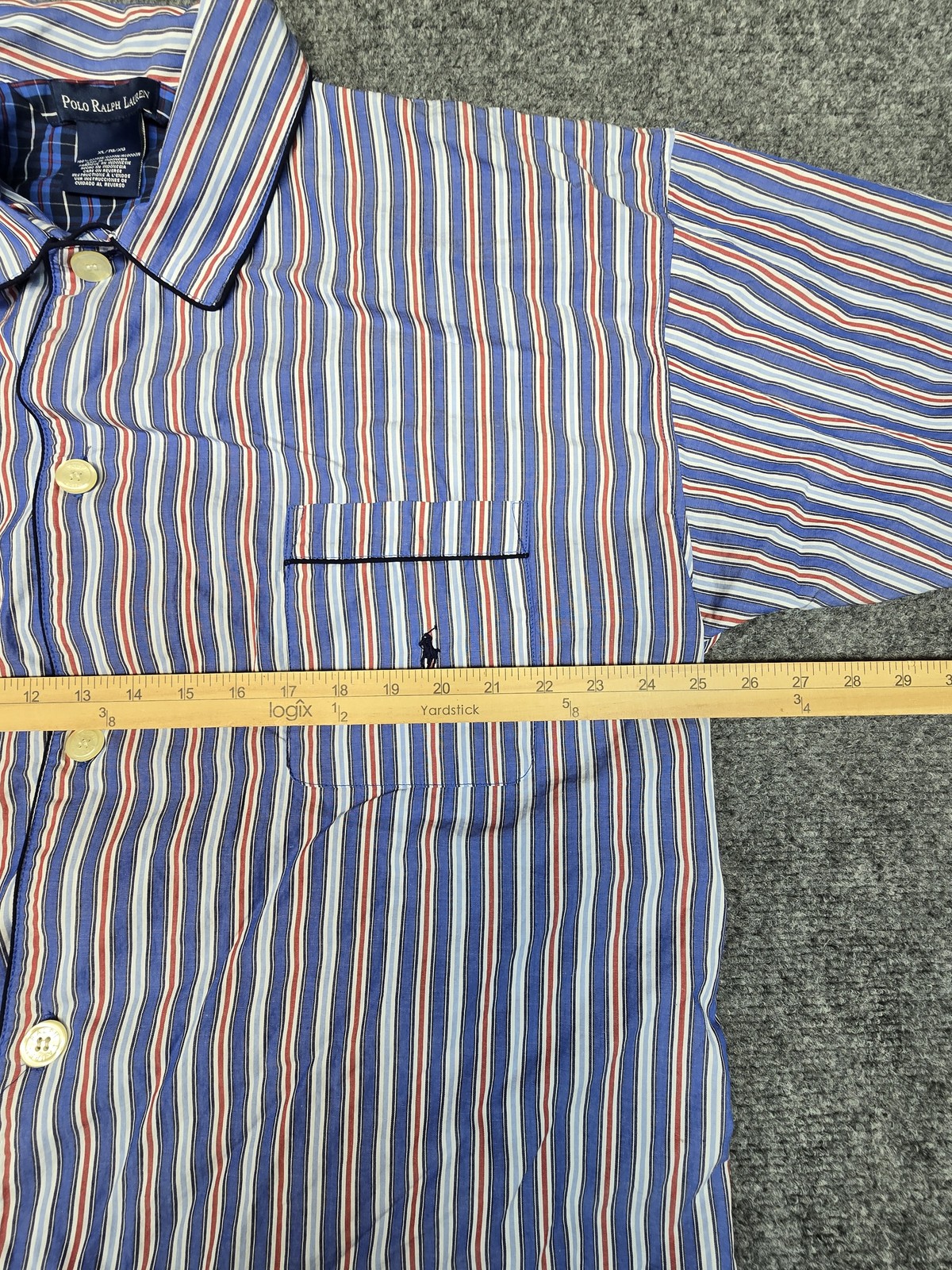 как выглядит Polo Ralph Lauren Shirt Mens XL Striped Pocket Short Sleeve Button Up Classic фото
