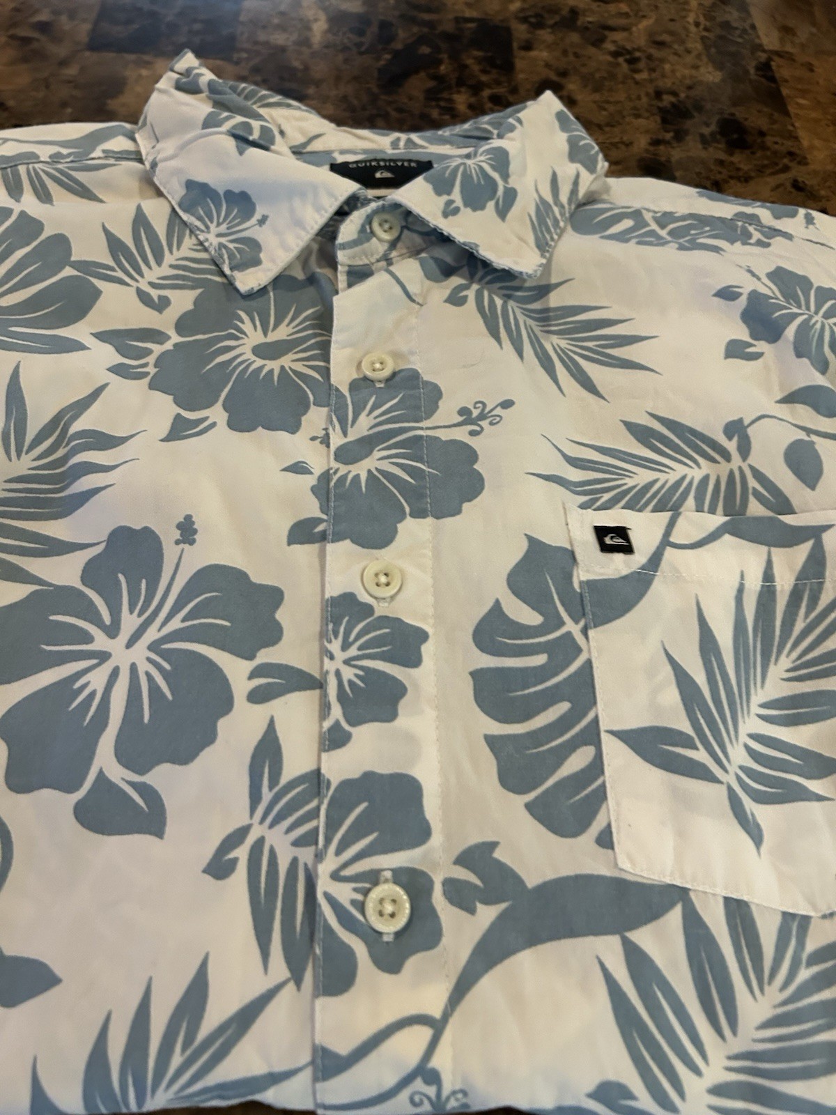 Quicksilver Floral Hawaiian Shirt Large Blue Floral Hibiscus Cotton Summer
