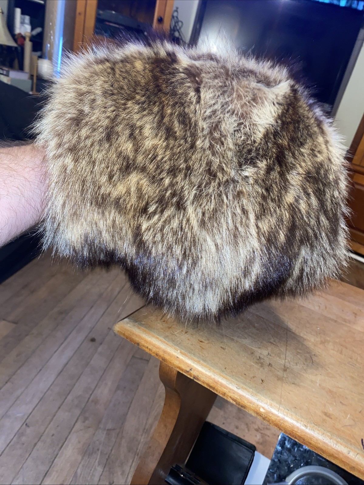 как выглядит Vintage Distressed Genuine Fur Muff Hand Warmer Dark Brown One Size фото