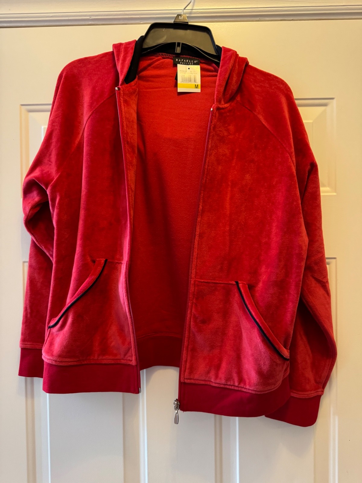 New Rafaella Strech Velour Red Hoodie Top Pants Size Women M
