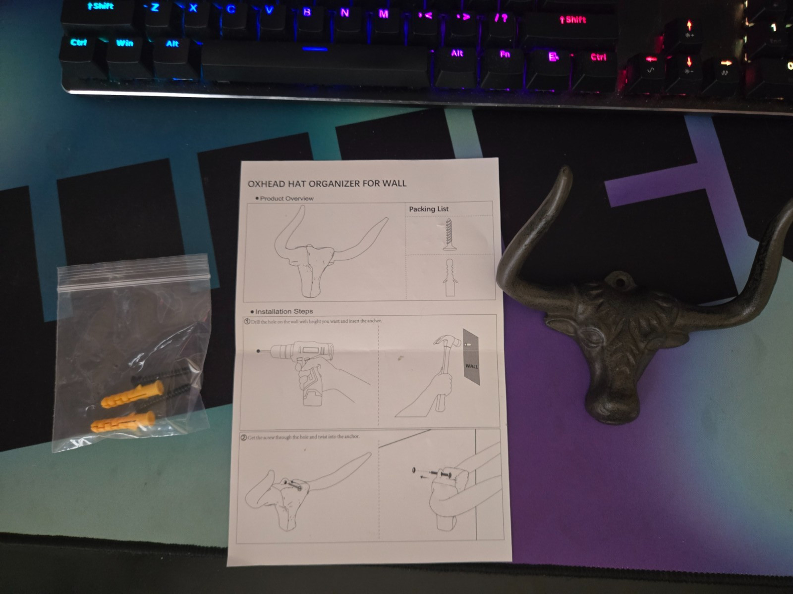 Cowboy Hat Holder Bull Head Wall Hook, cast iron