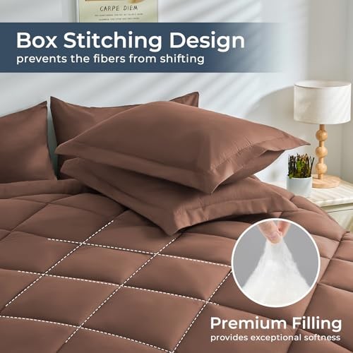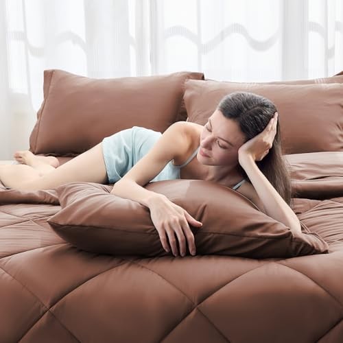 Cali-King Comforter Set - 7-Piece All Season Bed in a California King Brown