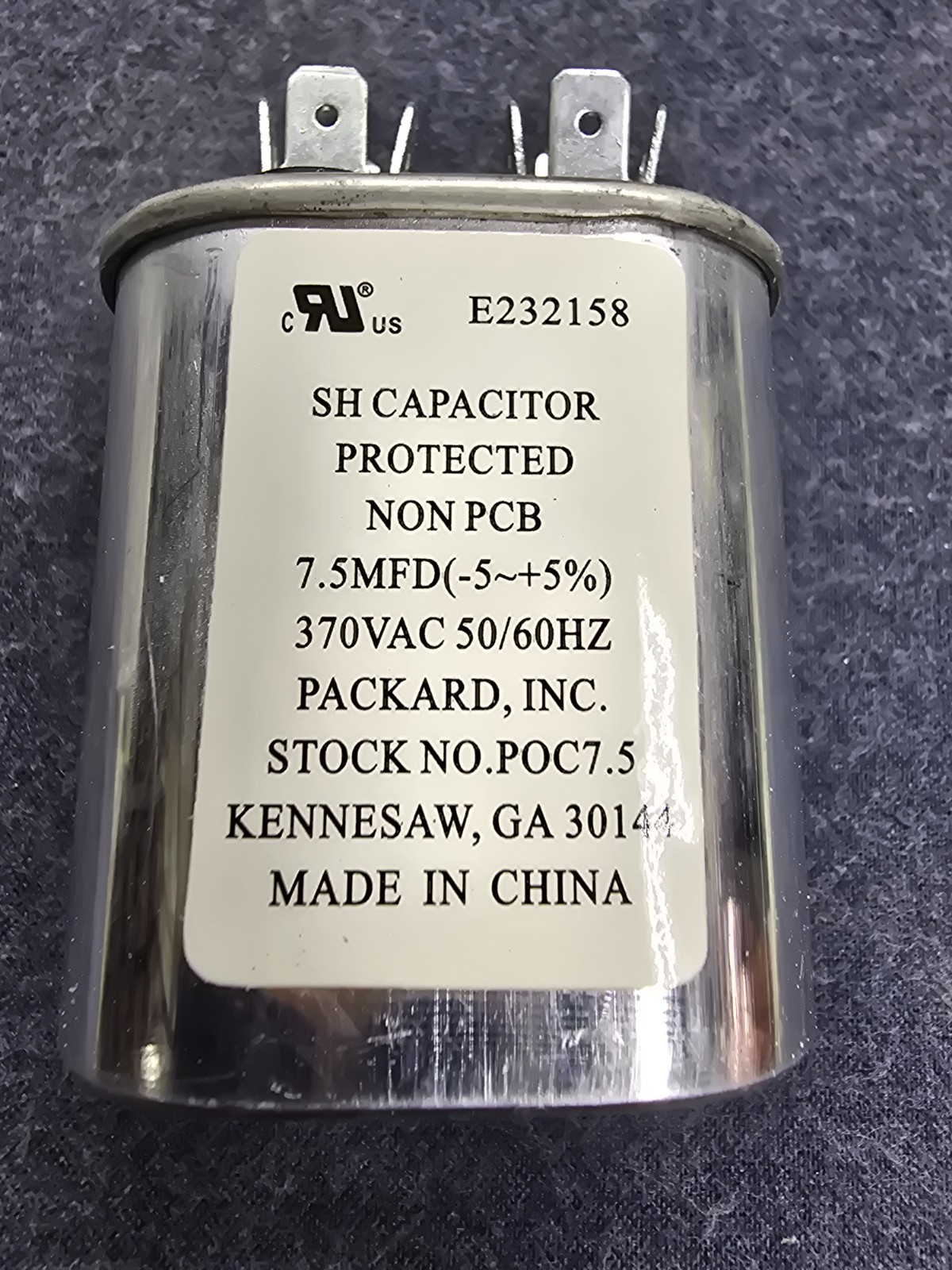 Packard Air Conditioning HVAC Oval Fan Motor Run Capacitor 7.5 MFD, 370 Volts