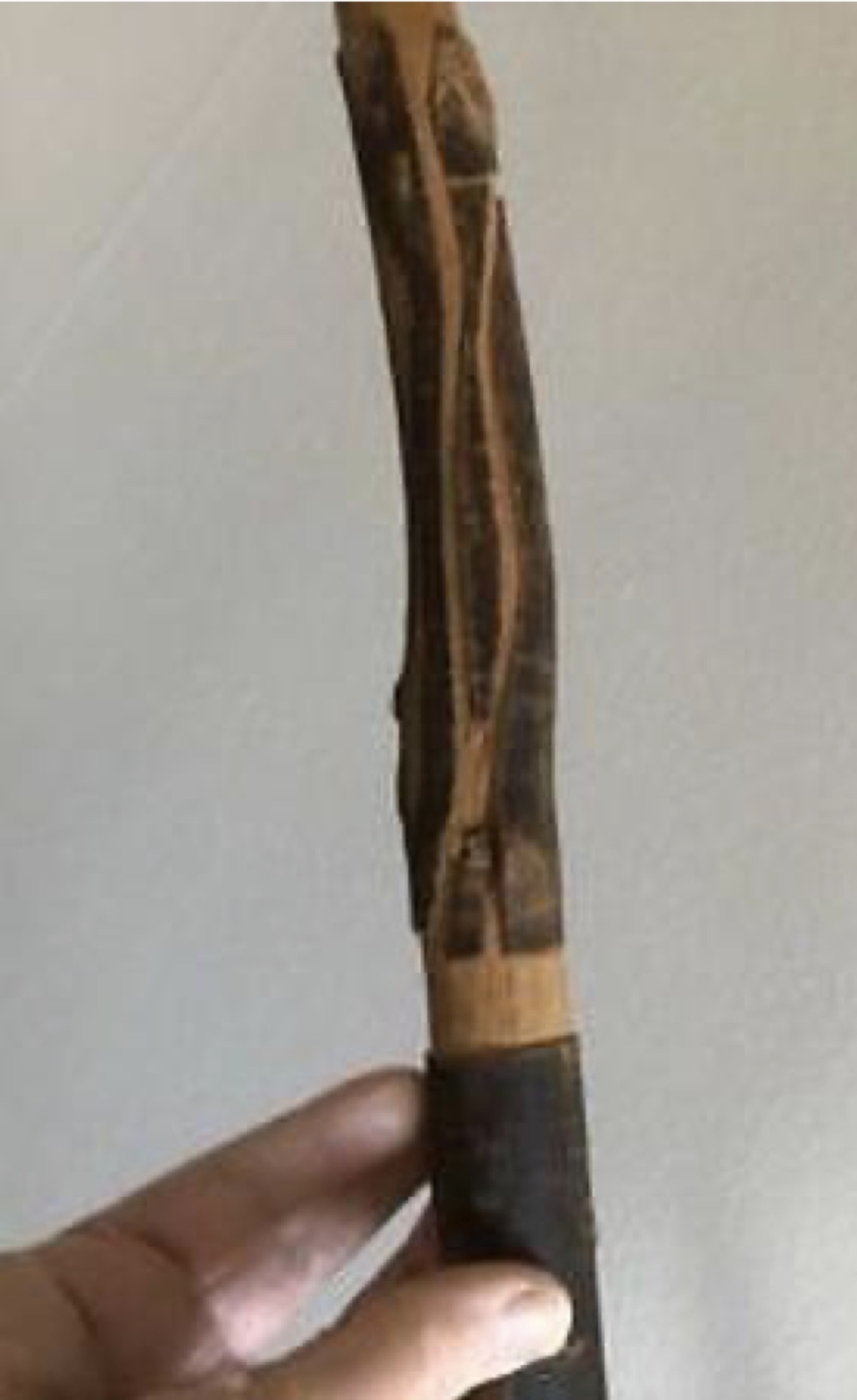 как выглядит vintage 45" walking stick carved wood engraved JMB 71 - estate find фото