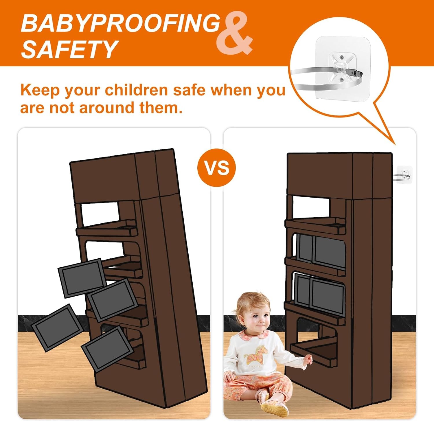 Additional product features: Adhesive Furniture Anchors, Stainless Steel, Baby Proofing