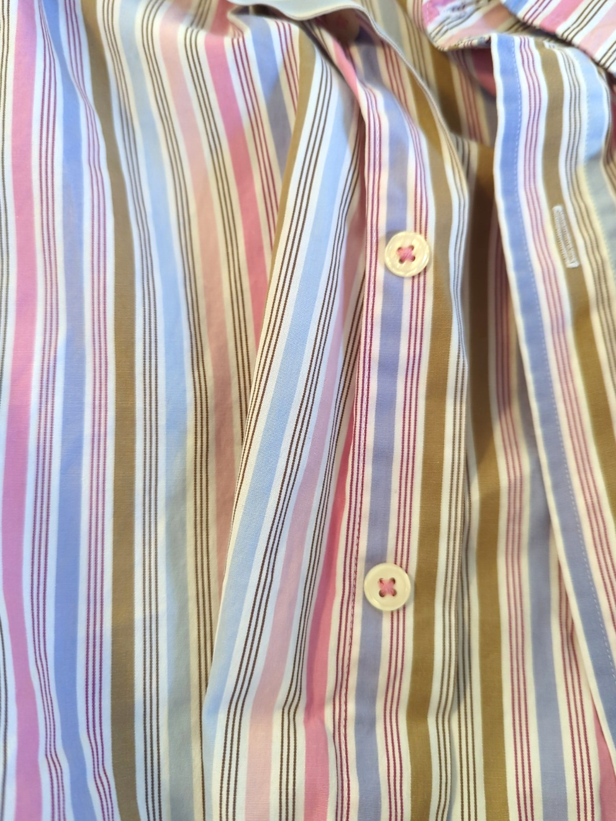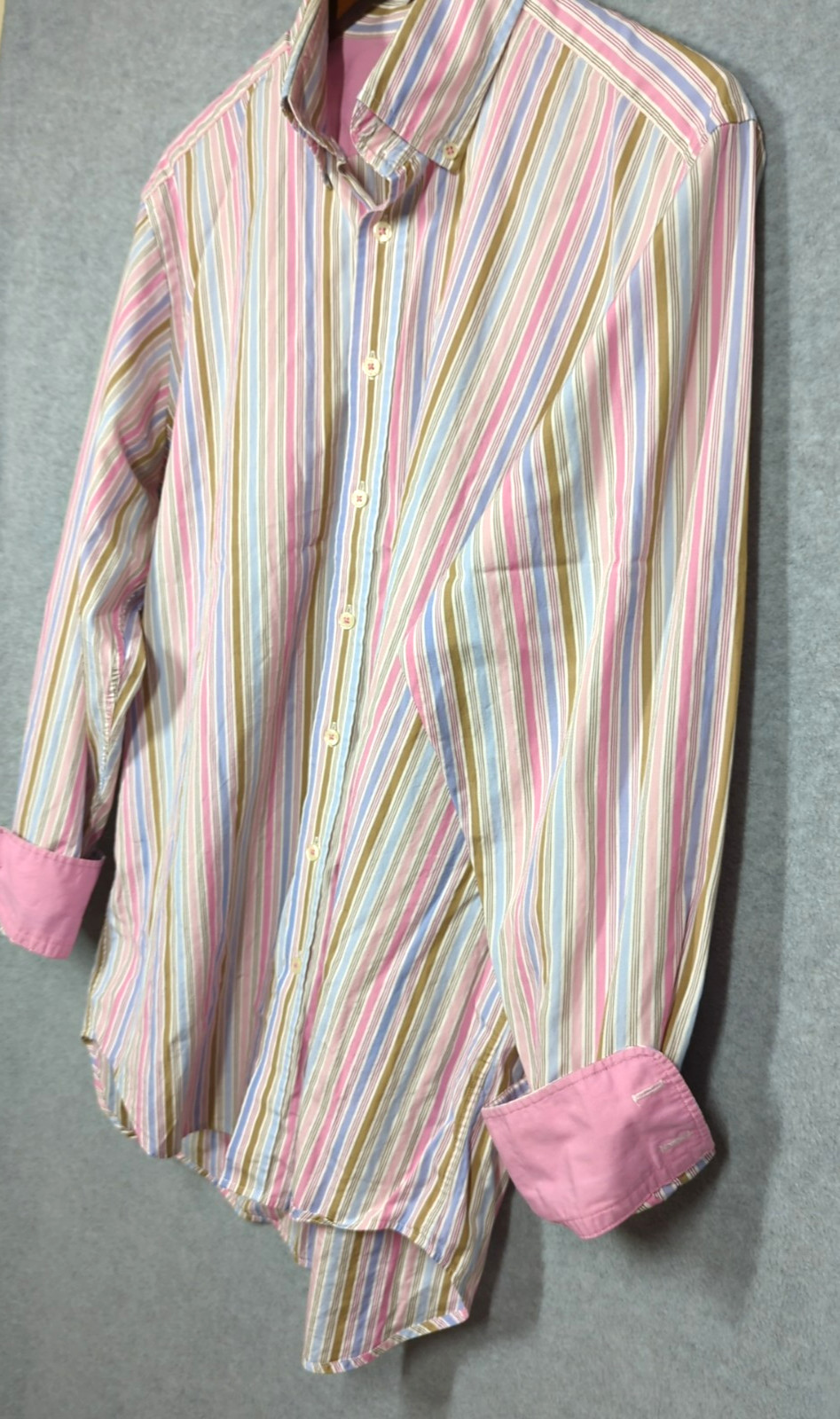 как выглядит Boden Shirt Men 16 1/2 Pink Purple Stripe Flip Cuff Button Up Polished Classic фото