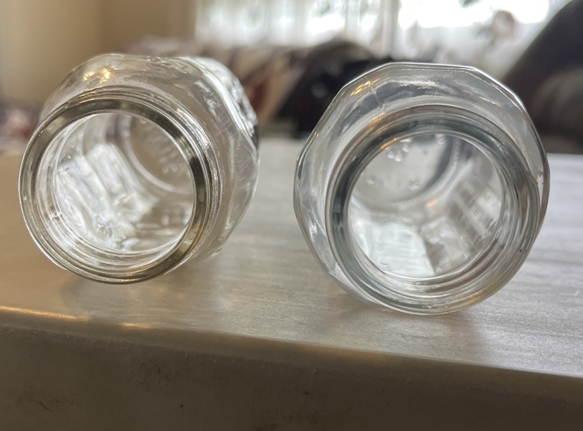 2 Evenflo Vintage Glass Baby Bottles 8oz. New Evenflo Nipples Generic Rings