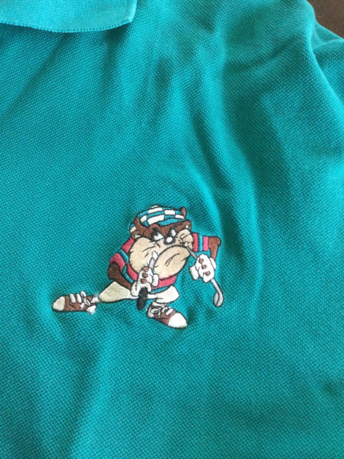 как выглядит Mens Looney Tunes Taz Golf Polo Shirt L Embroidered Tazmanian Devil Acme фото