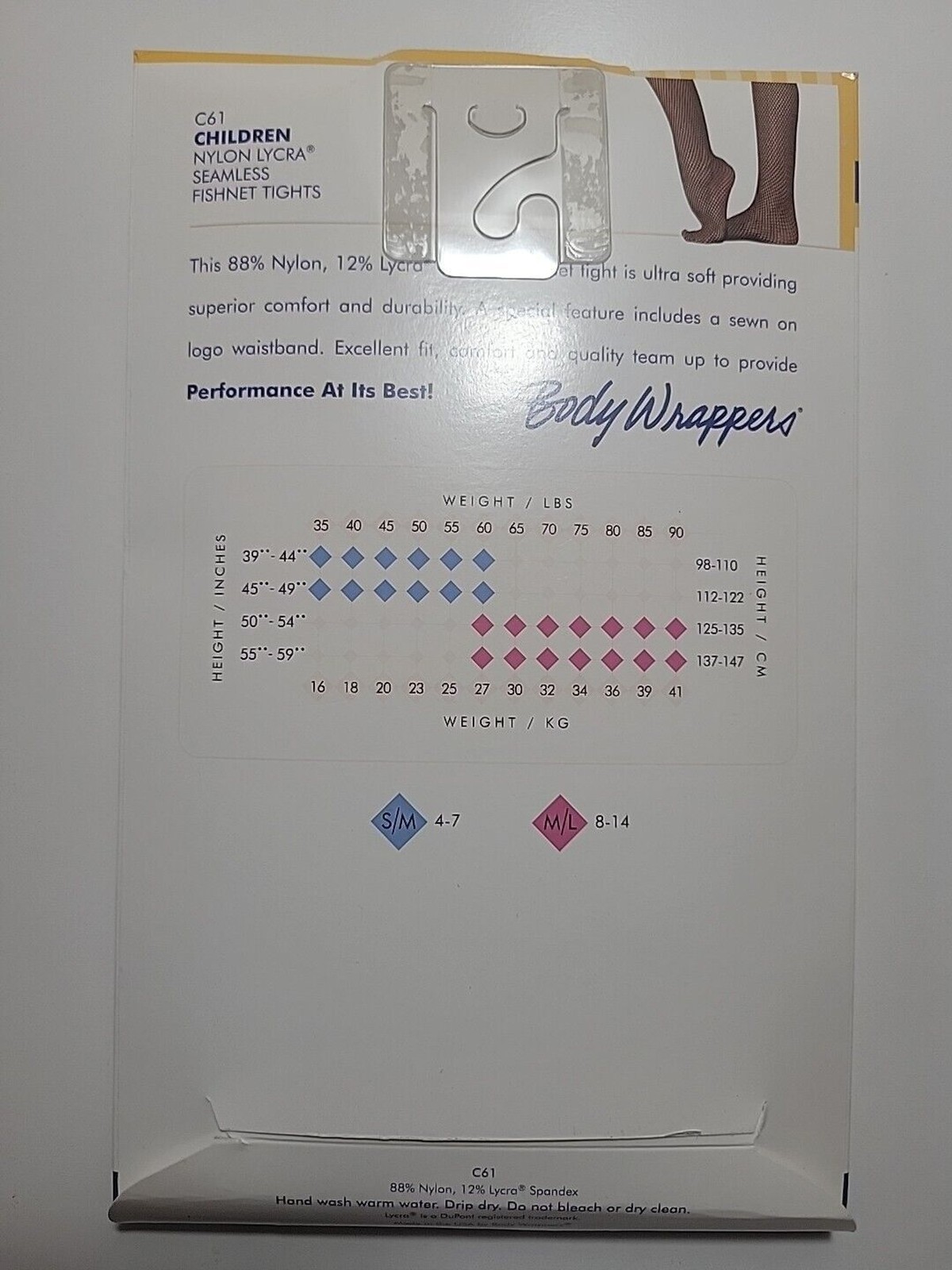 Body Wrappers C61 Black Girl's Size Medium/Large 8-14 Seamless Fishnet Tights