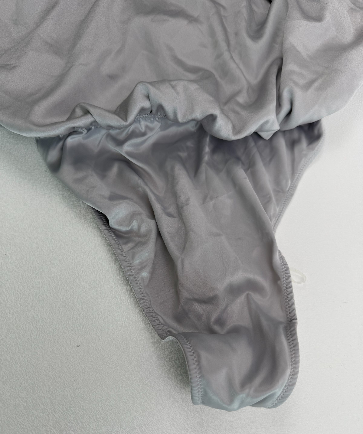 Victoria's Secret Satin Rhinestone Strap Teddy Snap On Bodysuit Gray XXL NWT