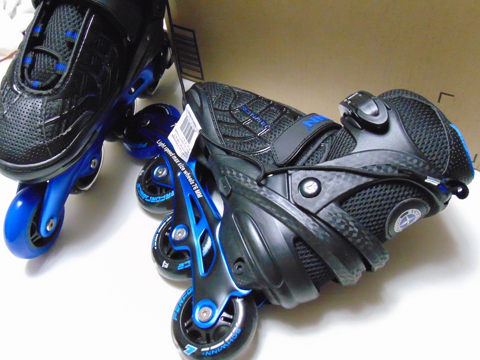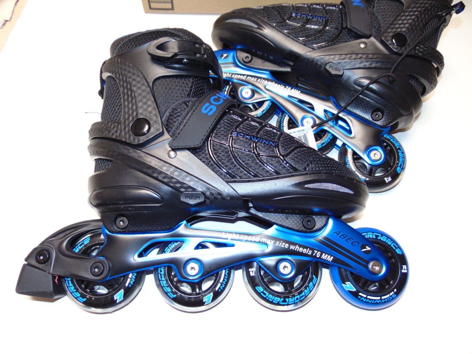 Schwinn In Line Skates NEW Black/Blue Adjustable Adult Size 6-7.5 Indoor Outdoor