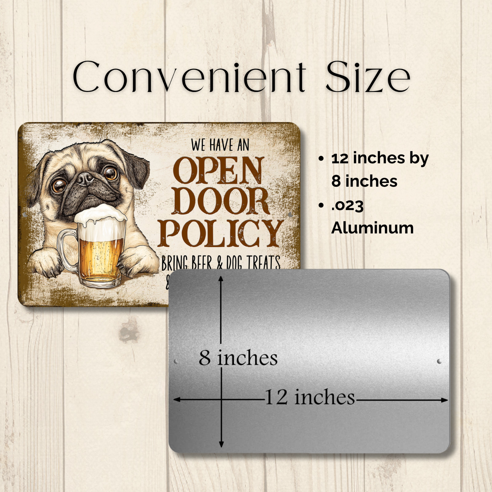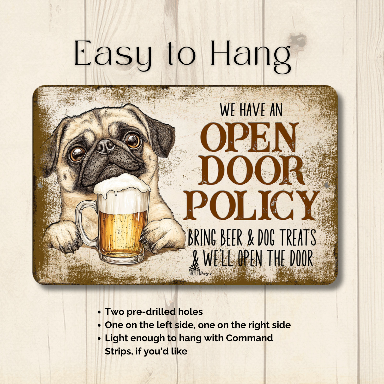 Pug Open Door Policy funny dog beer bar pub metal dad gift man cave art decor