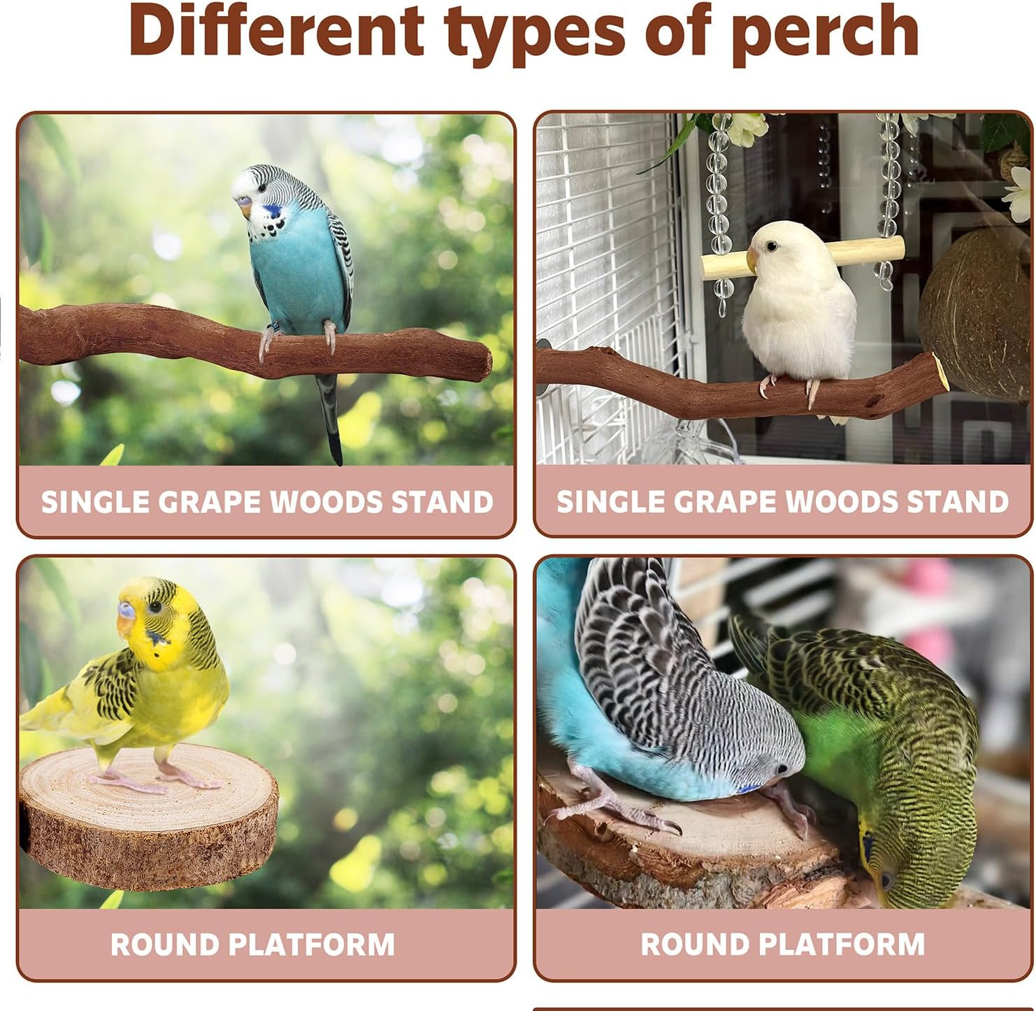 5PCS Bird Perch Stand Natural Wooden Parrot Stand Branch,3 Grape Wood Perch,2 Pl