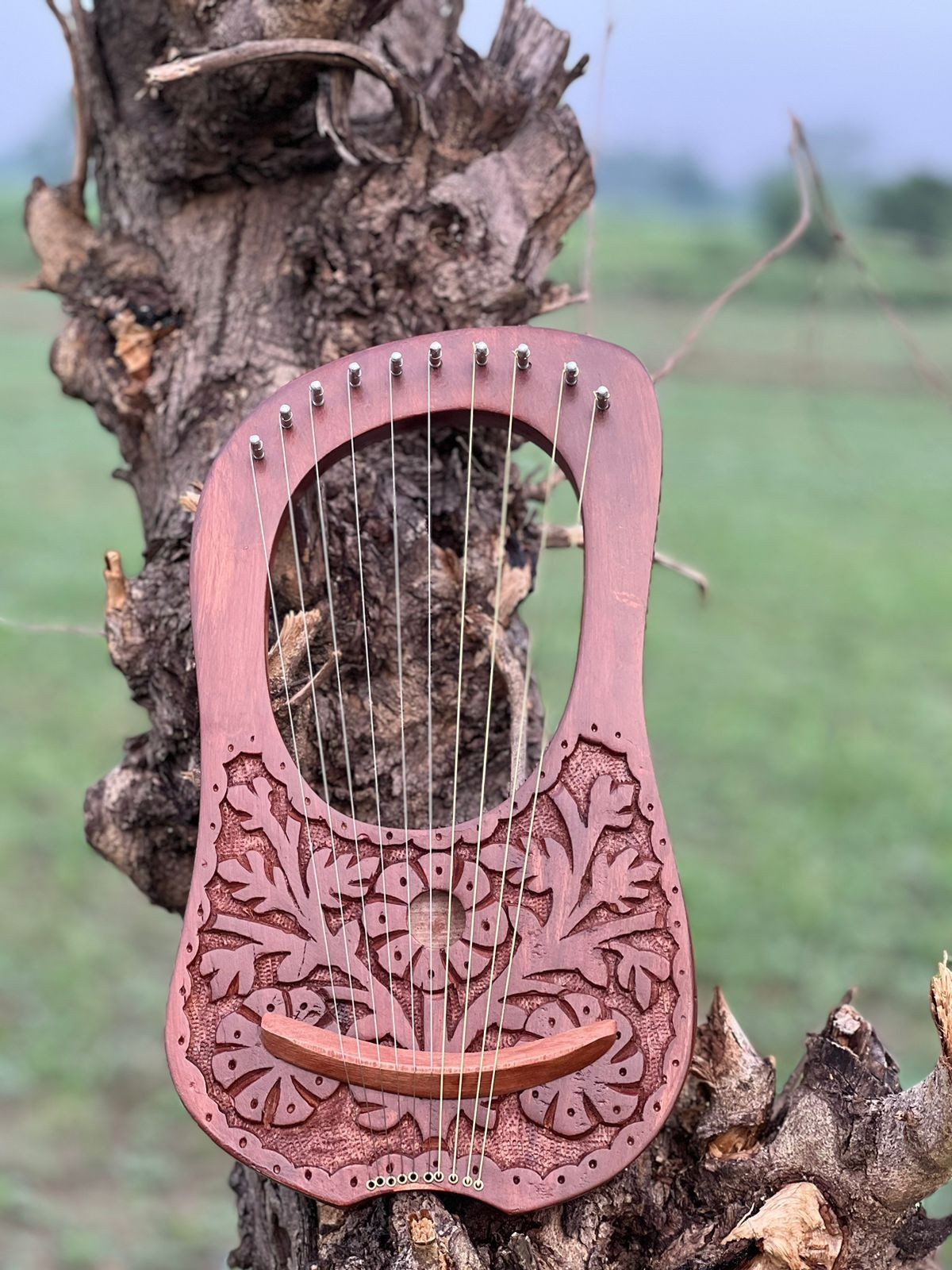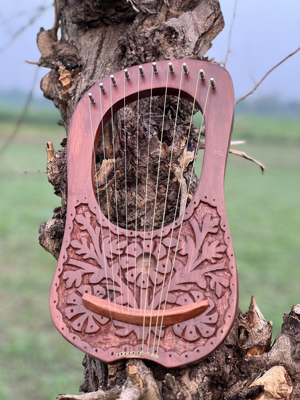 как выглядит Handmade Rosewood 10-String Lyre Harp Metal Strings Decorative Flower Design фото