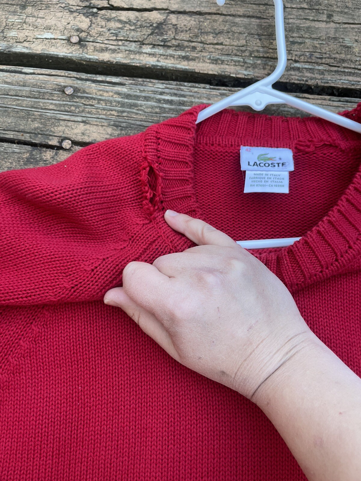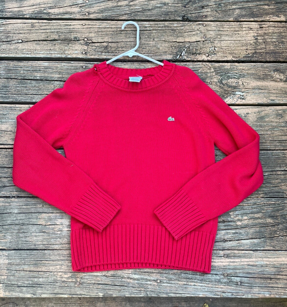 Vintage Lacoste Sweater Italy Red Fisherman Thrashed Knitted Cable Knit Large