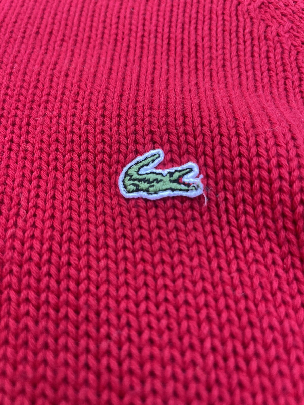 как выглядит Vintage Lacoste Sweater Italy Red Fisherman Thrashed Knitted Cable Knit Large фото