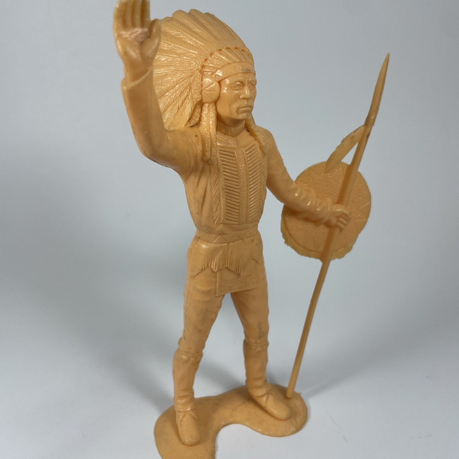 как выглядит VTG. 1964 Louis Marx Indian Chief W/Spear Shield 6" Plastic Figure фото