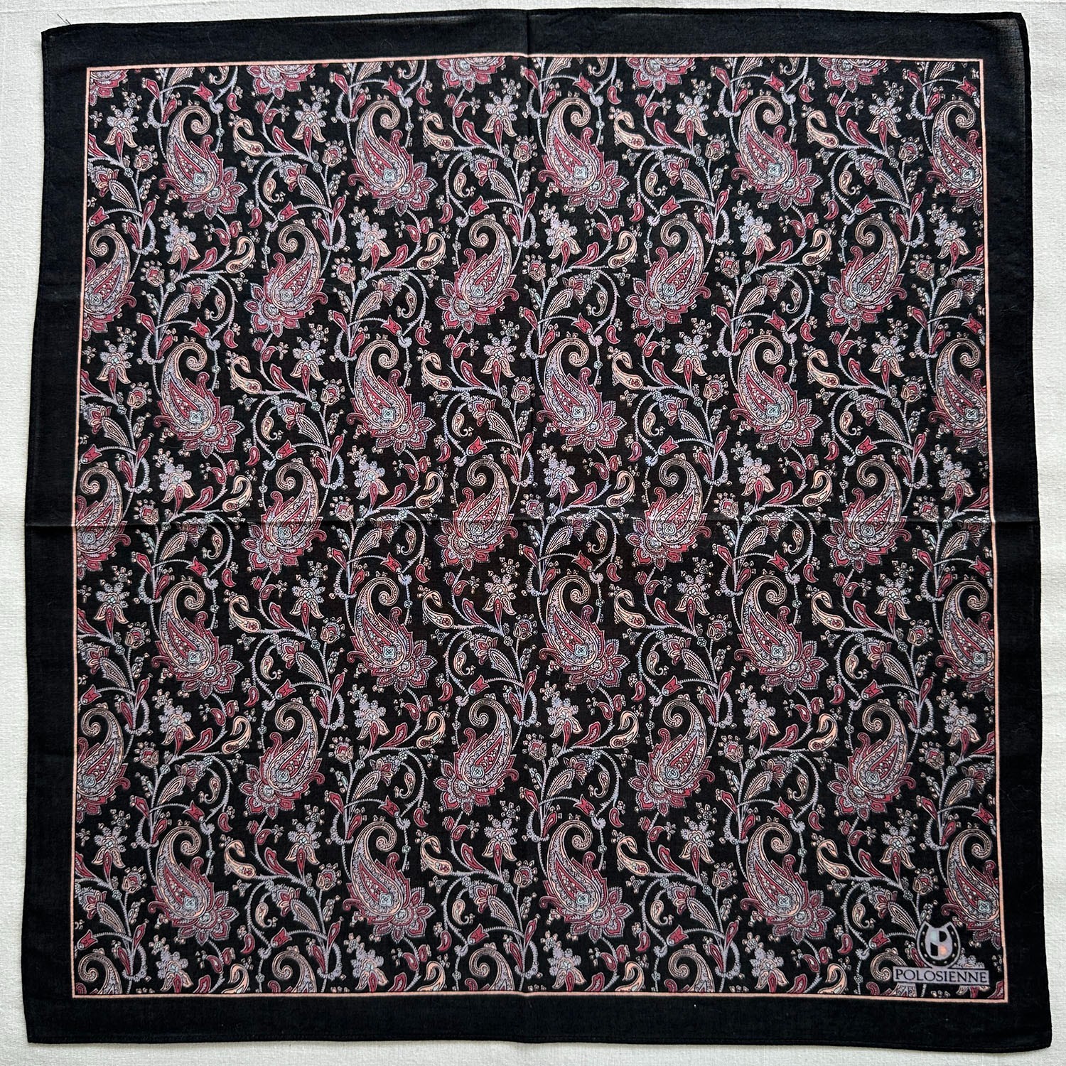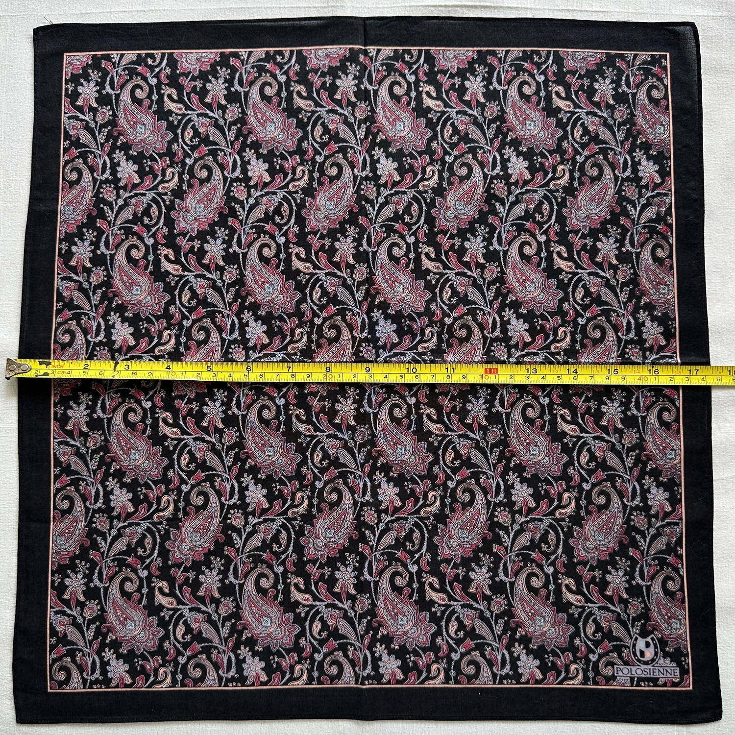 VTG Handkerchief Black Cotton Purple Floral Flourish Oriental Pocket Square 17