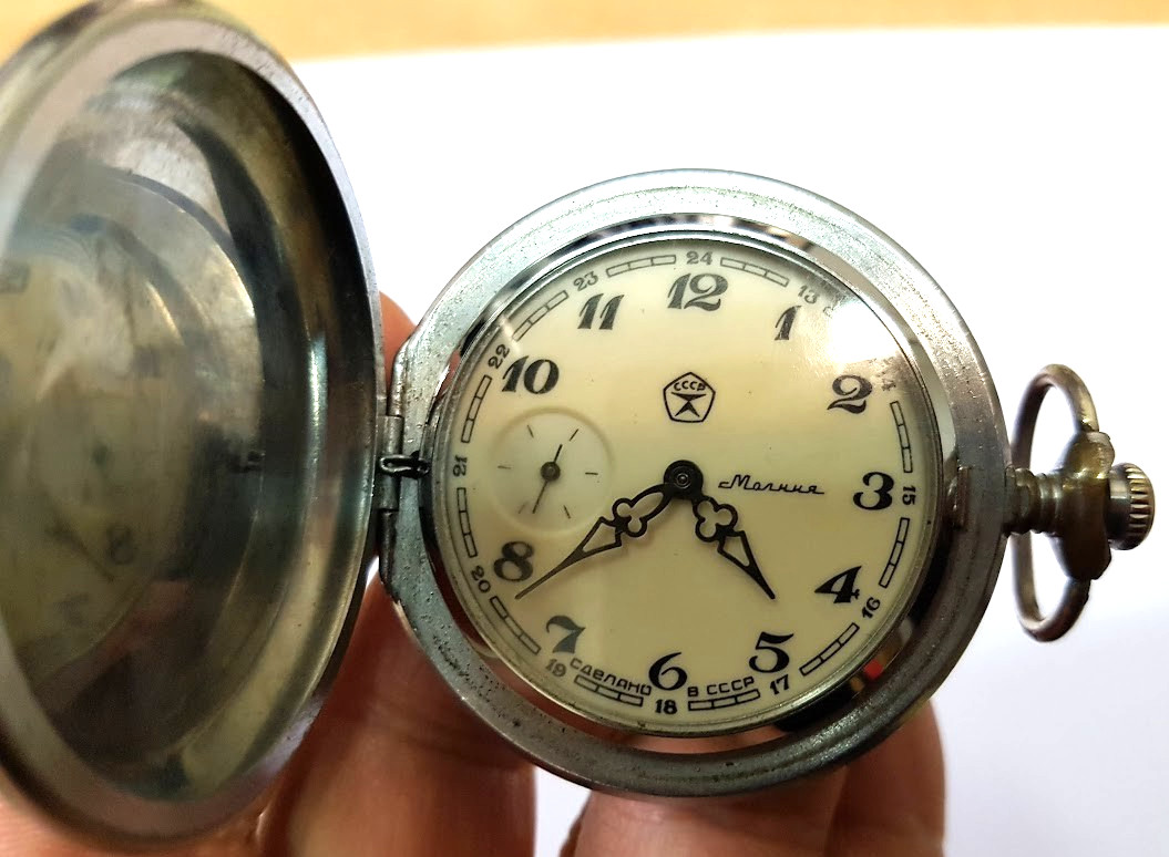 SOVIET RUSSIAN USSR VINTAGE POCKET WATCH MOLNIJA WORKING MECHANICAL RARITY